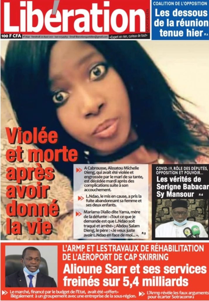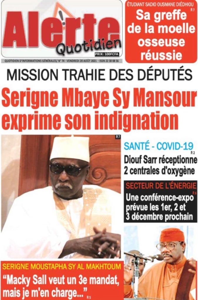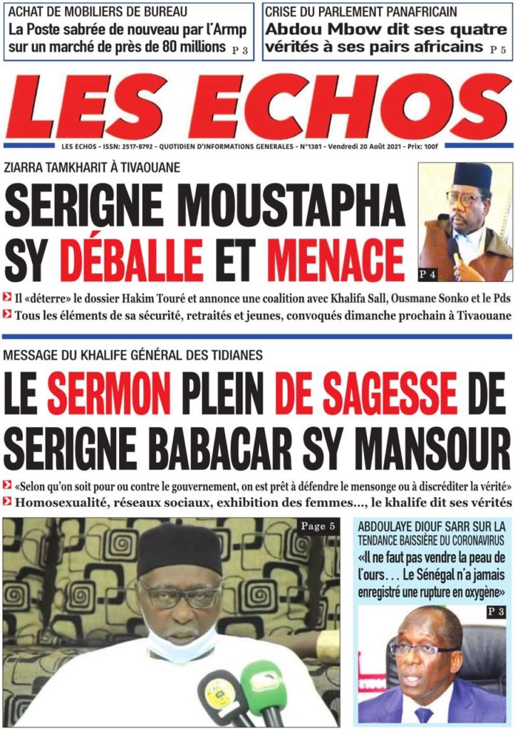 " /> La Une des quotidiens nationaux du Vendredi 20 Août 2021 Publié le 20 Août, 2021 À DÉCOUVRIR Les Unes des quotidiens nationaux du 29 octobre 2025 29 Oct, 2025 Partager ->