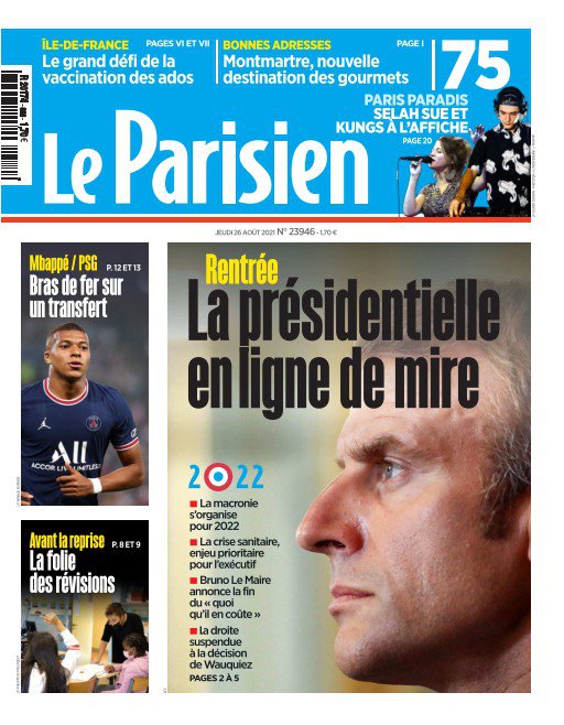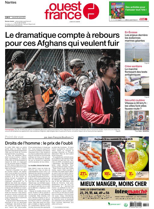 " /> La Une des quotidiens internationaux du Jeudi 26 Août 2021 Publié le 26 Août, 2021 À DÉCOUVRIR Les Unes des quotidiens nationaux du 30 octobre 2025 30 Oct, 2025 Partager ->