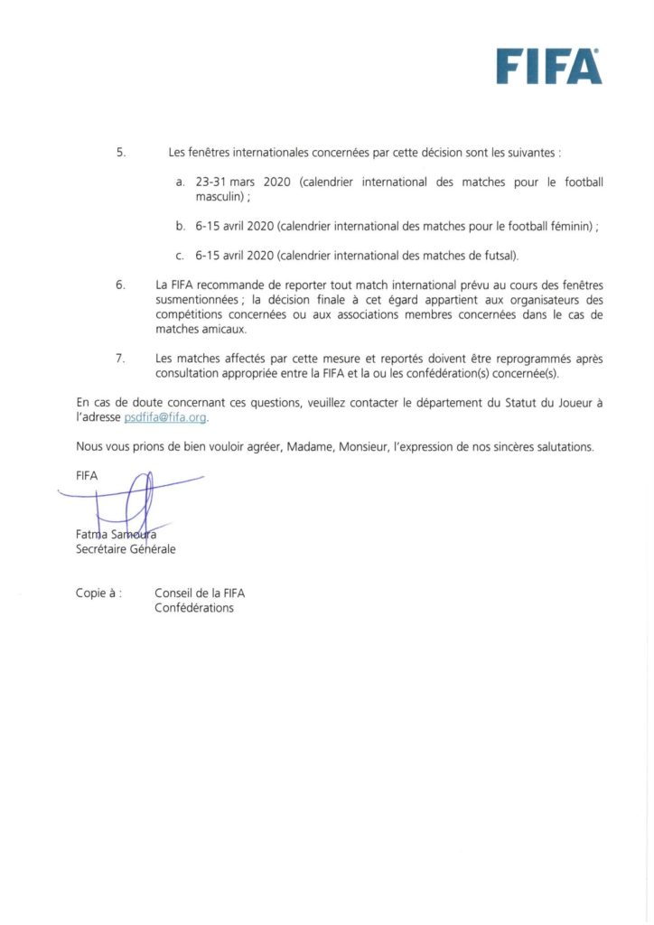 " /> FIFA : Mise à disposition des joueurs en équipe nationale et covid-19 Publié le 27 Août, 2021 À DÉCOUVRIR Lutte : La saison prolongée jusqu’au 24 août 9 Août, 2025 Partager ->