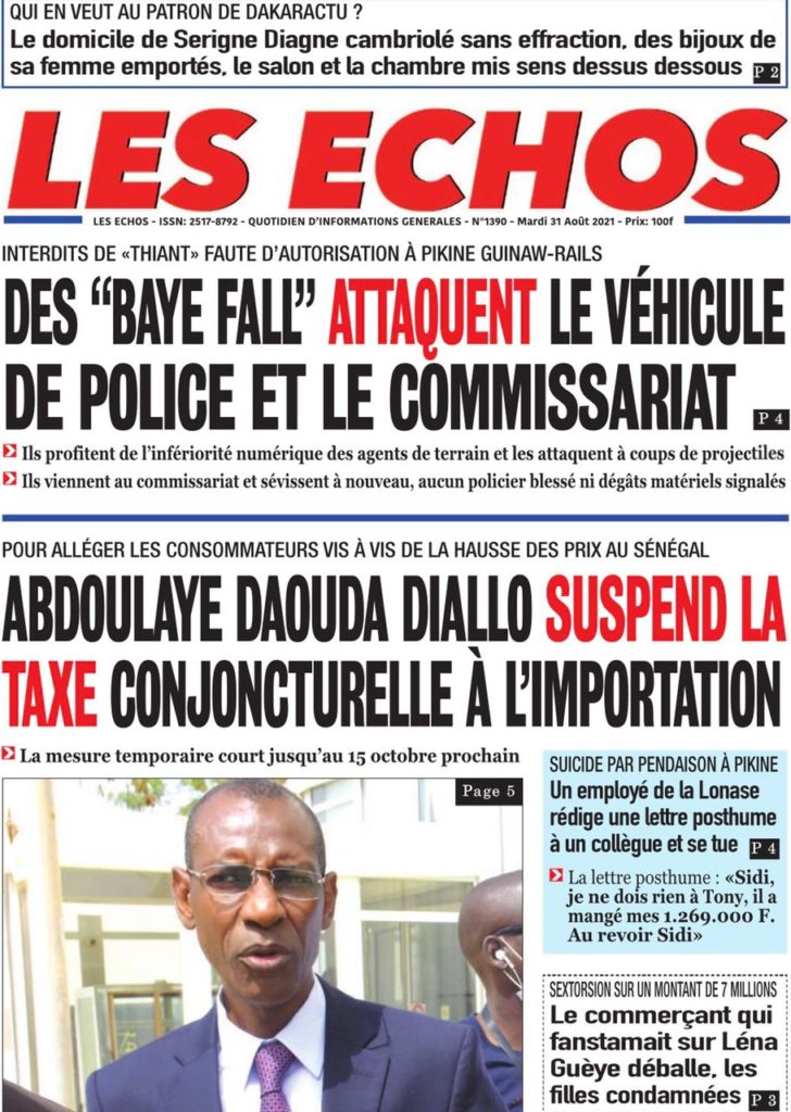 " /> La Une des quotidiens nationaux du Mardi 31 Août 2021 Publié le 31 Août, 2021 À DÉCOUVRIR Les Unes des quotidiens nationaux du 03 novembre 2025 3 Nov, 2025 Partager ->