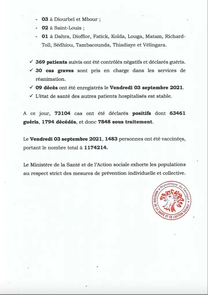 " /> Covid-19 : 57 cas et 9 décès Publié le 4 Sep, 2021 À DÉCOUVRIR Communiqué du Conseil des ministres du mercredi 1er octobre… 2 Oct, 2025 Partager ->