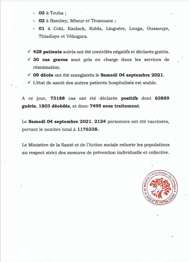 " /> Covid-19 : 84 cas et 9 décès Publié le 5 Sep, 2021 À DÉCOUVRIR Communiqué du Conseil des ministres du mercredi 1er octobre… 2 Oct, 2025 Partager ->