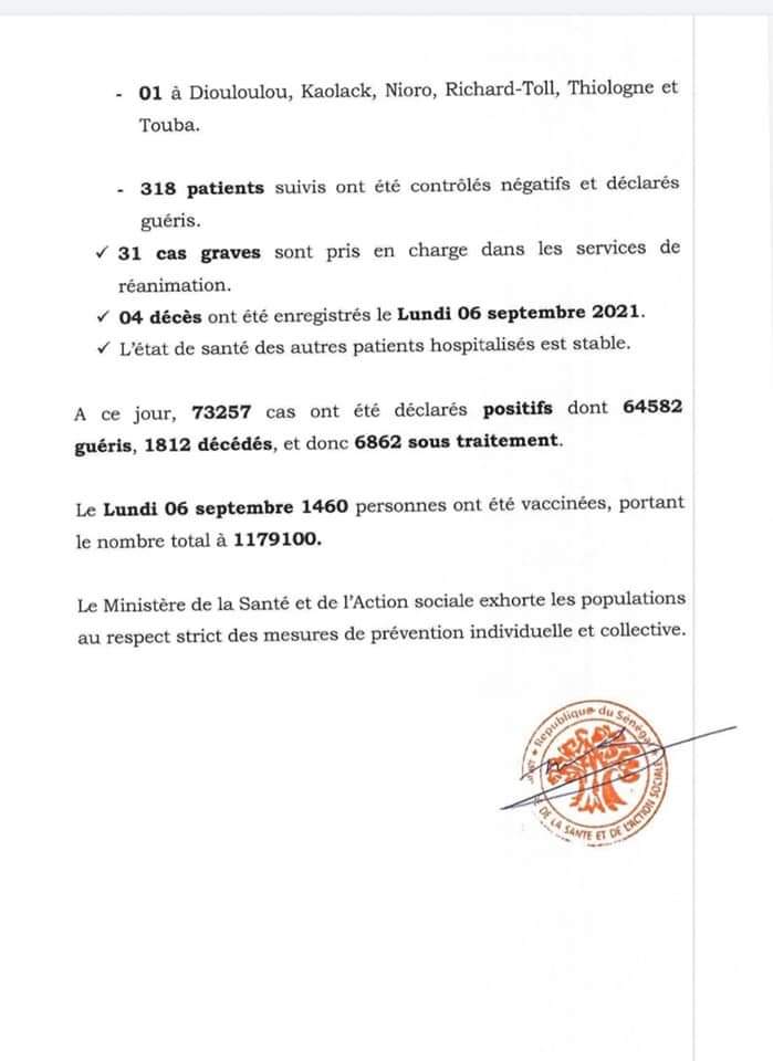 " /> Covid-19 : 30 cas et 4 décès Publié le 7 Sep, 2021 À DÉCOUVRIR Communiqué du Conseil des ministres du mercredi 12 novembre… 12 Nov, 2025 Partager ->