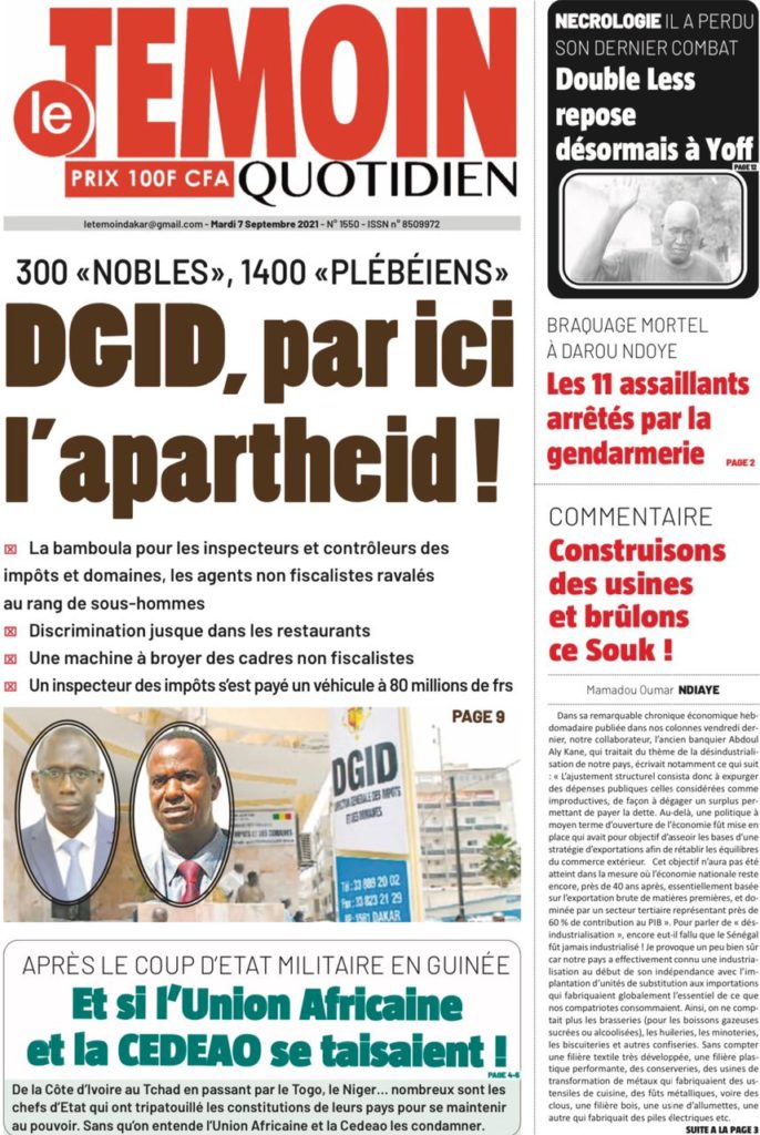 " /> La Une des quotidiens nationaux du Mardi 7 Septembre 2021 Publié le 7 Sep, 2021 À DÉCOUVRIR Les Unes des quotidiens nationaux du 19 novembre 2025 19 Nov, 2025 Partager ->