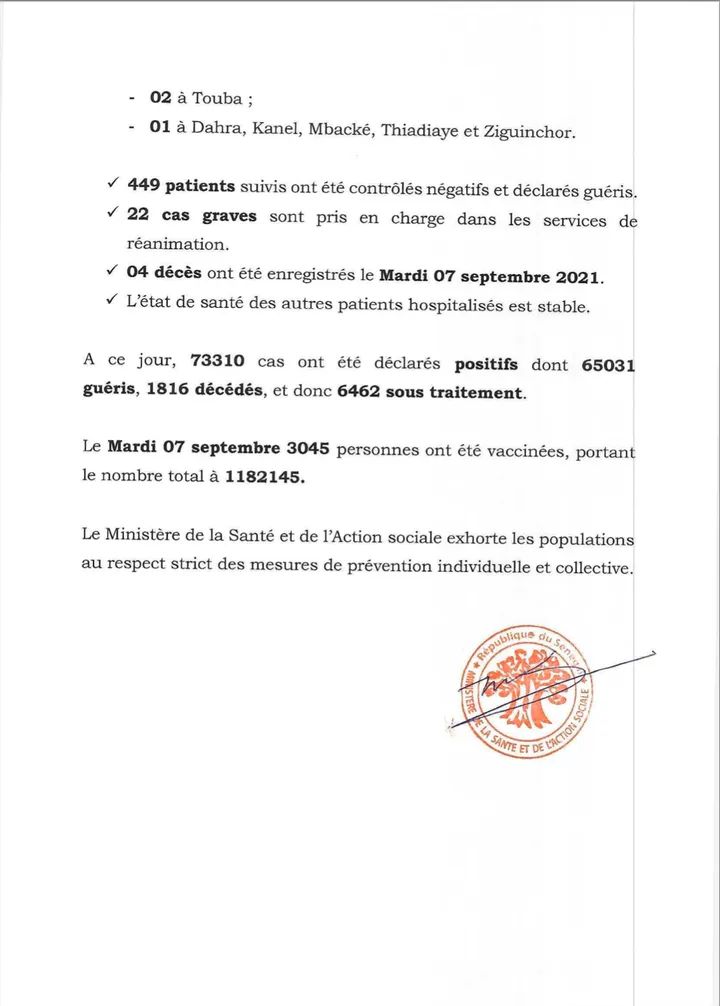 " /> Covid-19 : 53 cas et 4 décès Publié le 8 Sep, 2021 À DÉCOUVRIR Communiqué du Conseil des ministres du mercredi 1er octobre… 2 Oct, 2025 Partager ->
