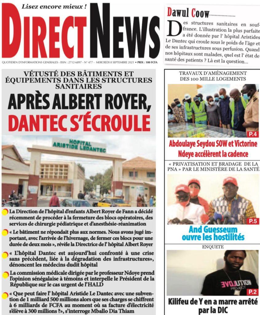 " /> La Une des quotidiens nationaux du Mercredi 8 Septembre 2021 Publié le 8 Sep, 2021 À DÉCOUVRIR Les Unes des quotidiens nationaux du 03 novembre 2025 3 Nov, 2025 Partager ->