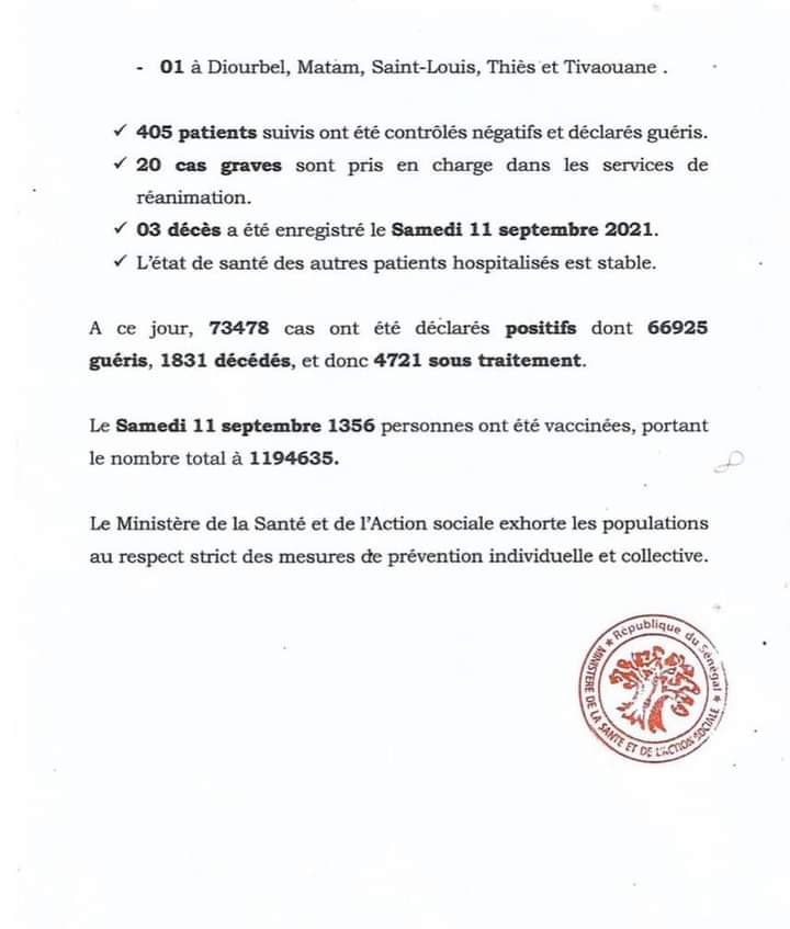 " /> Covid-19 : 38 cas et 3 décès Publié le 12 Sep, 2021 À DÉCOUVRIR Communiqué du Conseil des ministres du mercredi 12 novembre… 12 Nov, 2025 Partager ->