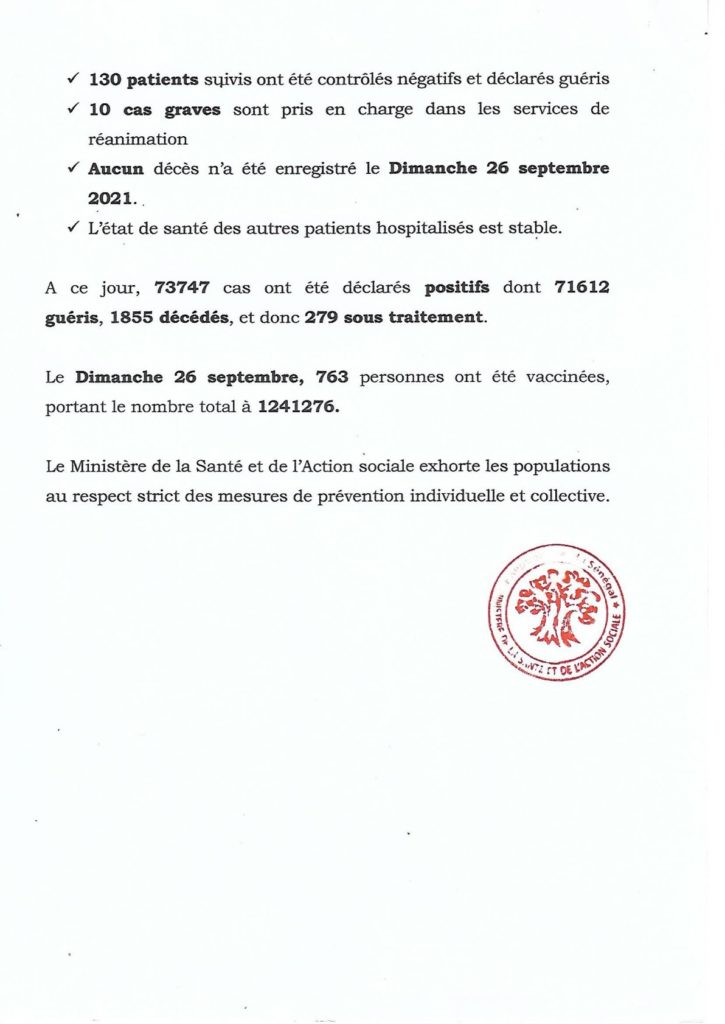 " /> Covid-19 : 05 cas positifs, aucun décès, 10 cas graves et 279 sous traitement Publié le 27 Sep, 2021 À DÉCOUVRIR Communiqué du Conseil des ministres du mercredi 12 novembre… 12 Nov, 2025 La rédaction de SenCaféActu Partager ->