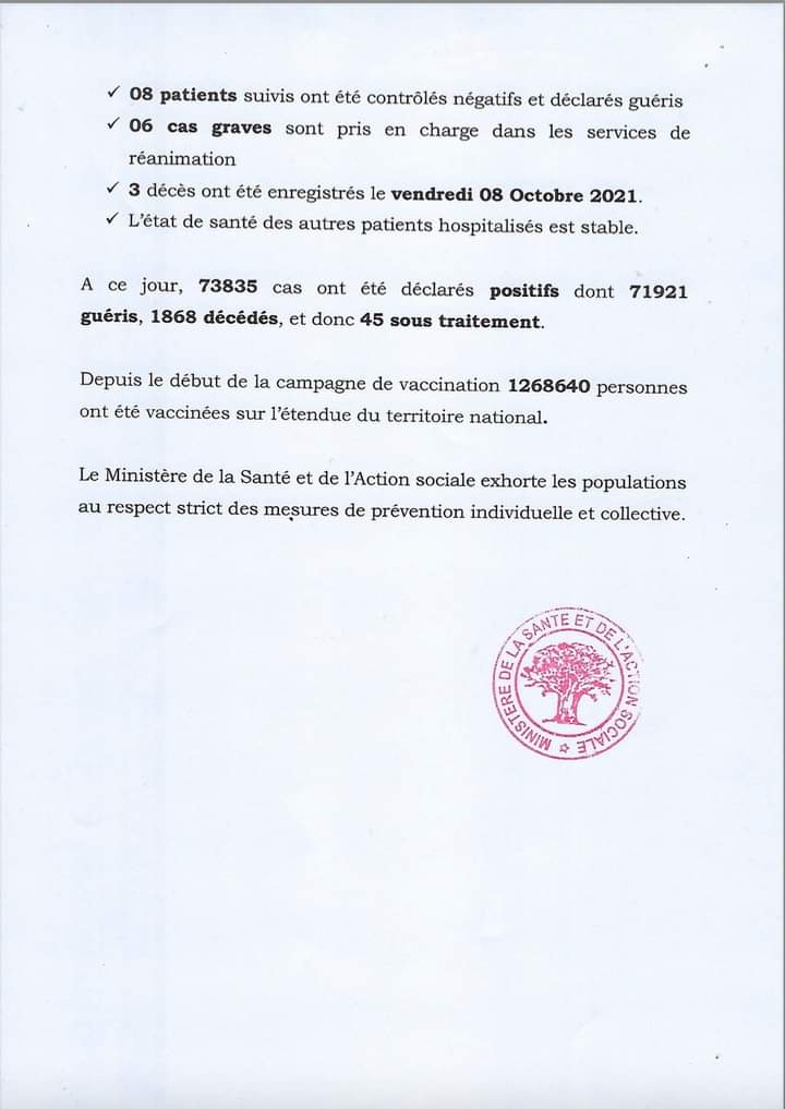 " /> Covid-19 : 04 cas positifs, 03 décès, 06 cas graves et 45 sous traitement Publié le 9 Oct, 2021 À DÉCOUVRIR Communiqué du Conseil des ministres du mercredi 12 novembre… 12 Nov, 2025 Partager ->