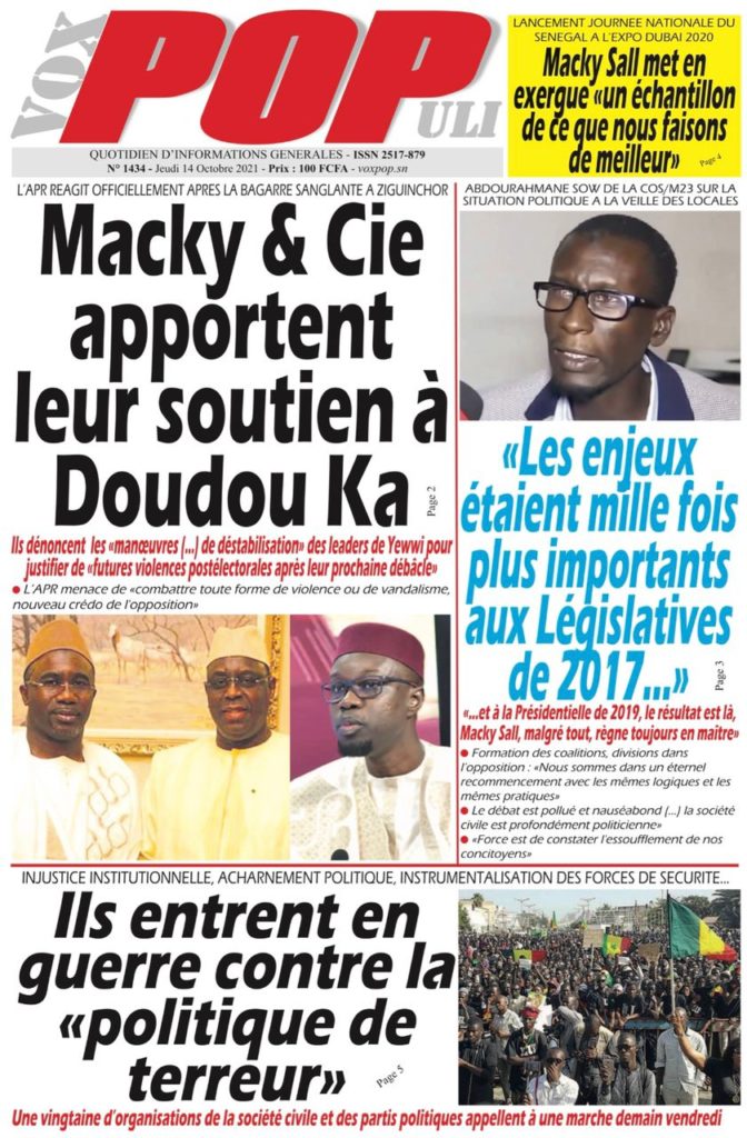 " /> La Une des quotidiens nationaux du Jeudi 14 Octobre 2021 Publié le 14 Oct, 2021 À DÉCOUVRIR Les Unes des quotidiens nationaux du 21 novembre 2025 21 Nov, 2025 Partager ->