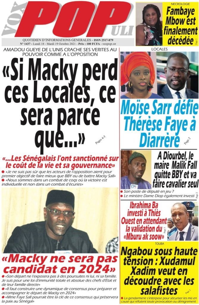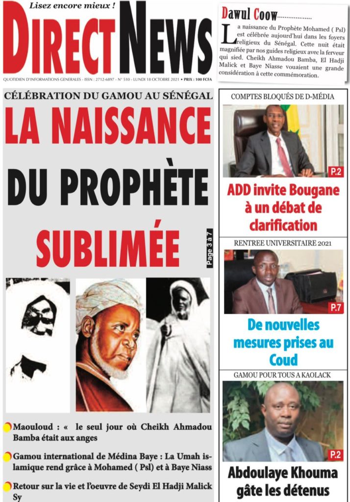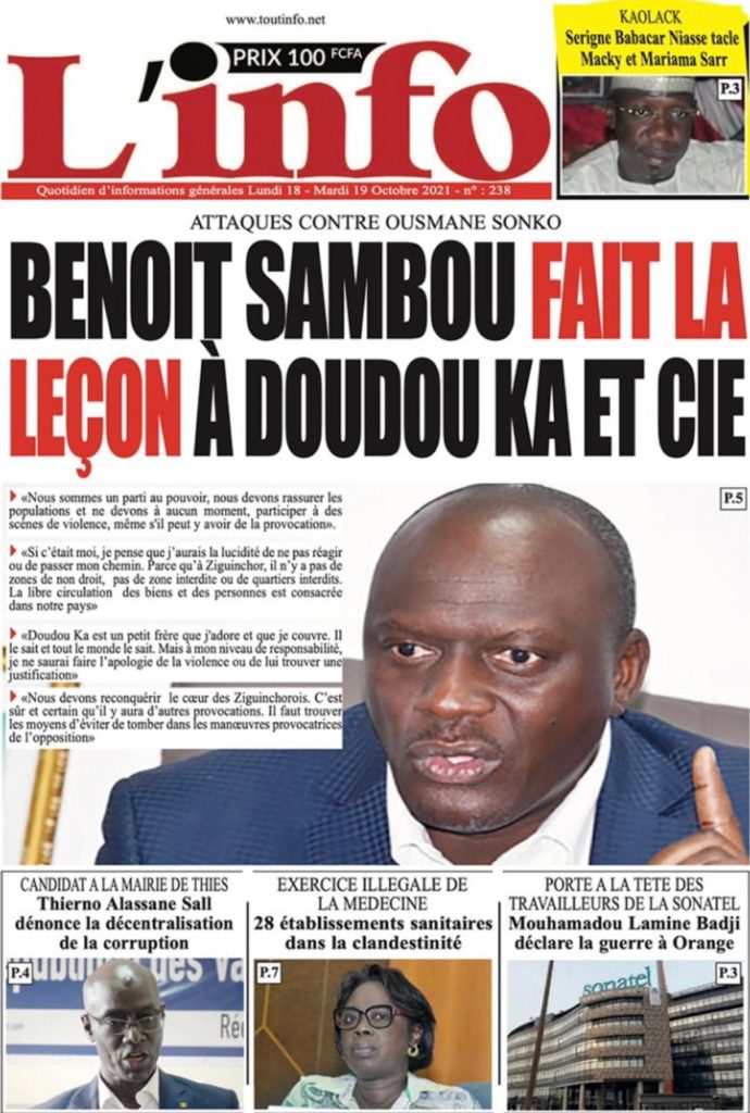 " /> La Une des quotidiens nationaux du Lundi 18 Octobre 2021 Publié le 18 Oct, 2021 À DÉCOUVRIR Les Unes des quotidiens nationaux du 03 novembre 2025 3 Nov, 2025 Partager ->