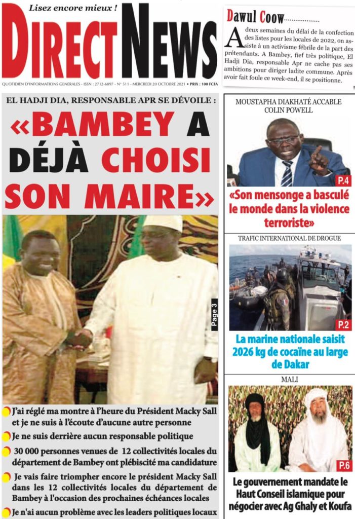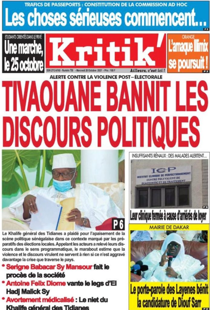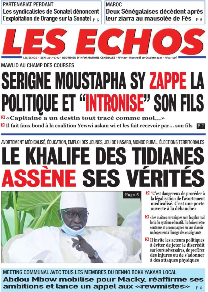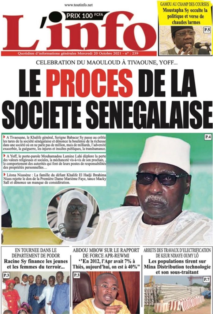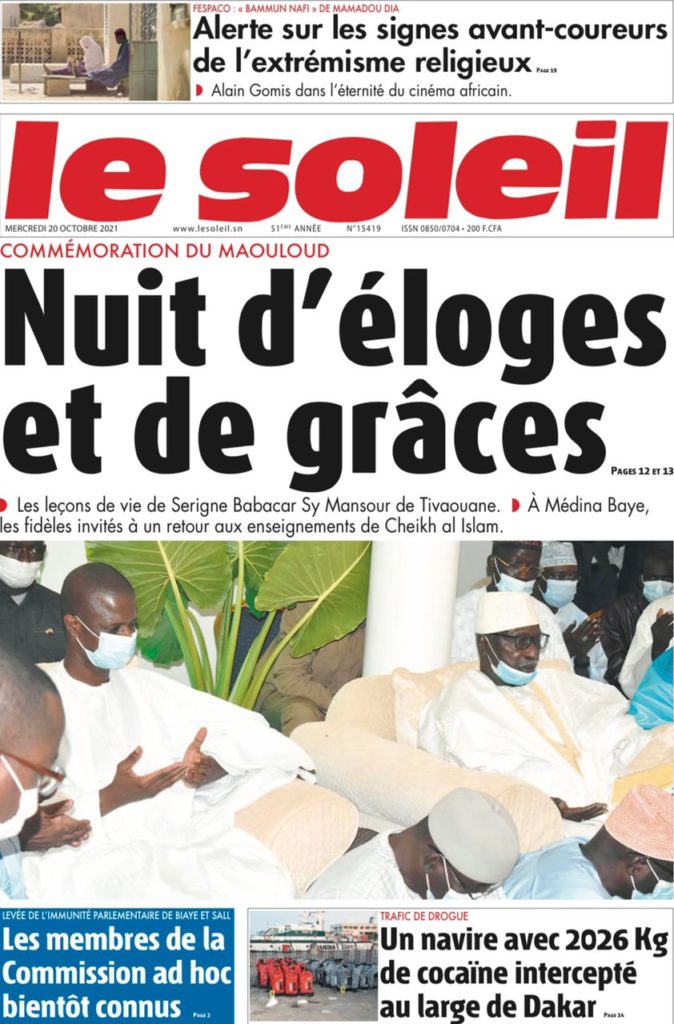 " /> La Une des quotidiens nationaux du Mercredi 20 Octobre 2021 Publié le 20 Oct, 2021 À DÉCOUVRIR Les Unes des quotidiens nationaux du 03 novembre 2025 3 Nov, 2025 Partager ->