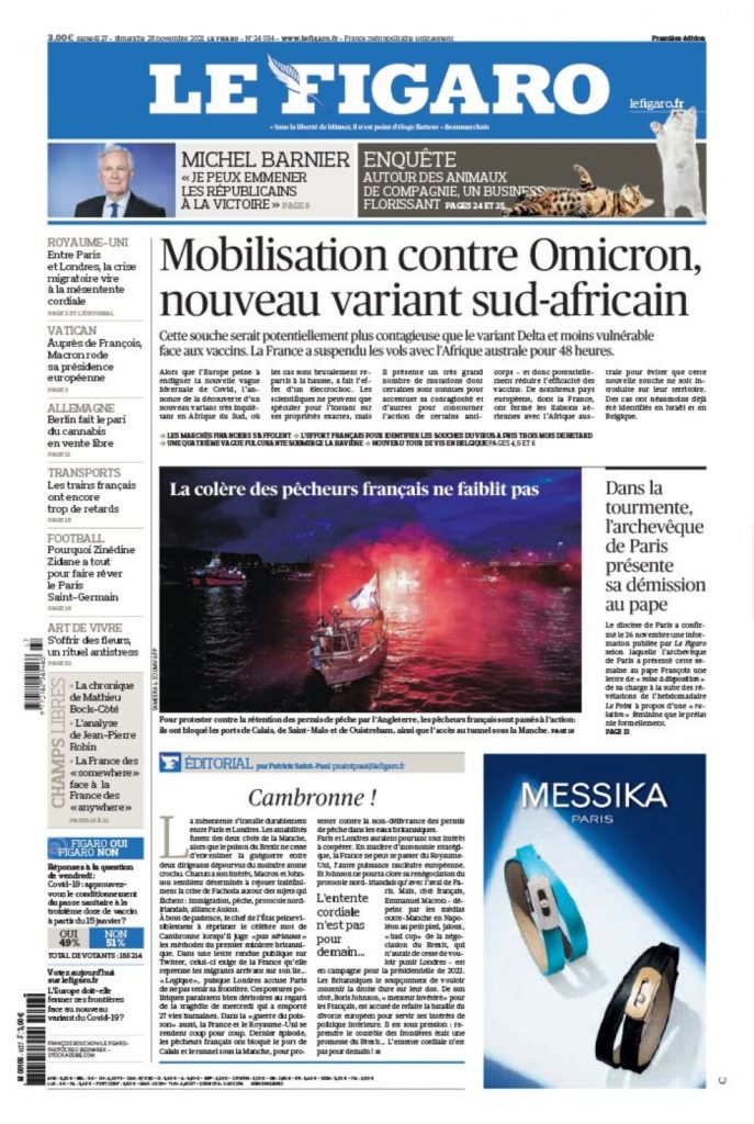 " /> La Une des quotidiens internationaux du Samedi 27 Novembre 2021 Publié le 27 Nov, 2021 À DÉCOUVRIR Les Unes de la presse internationale du 6 août 2025 6 Août, 2025 Partager ->