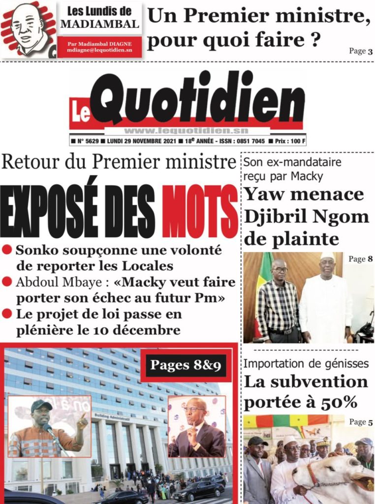 " /> La Une des quotidiens nationaux du Lundi 29 Novembre 2021 Publié le 29 Nov, 2021 À DÉCOUVRIR Les Unes des quotidiens nationaux du 03 novembre 2025 3 Nov, 2025 Partager ->