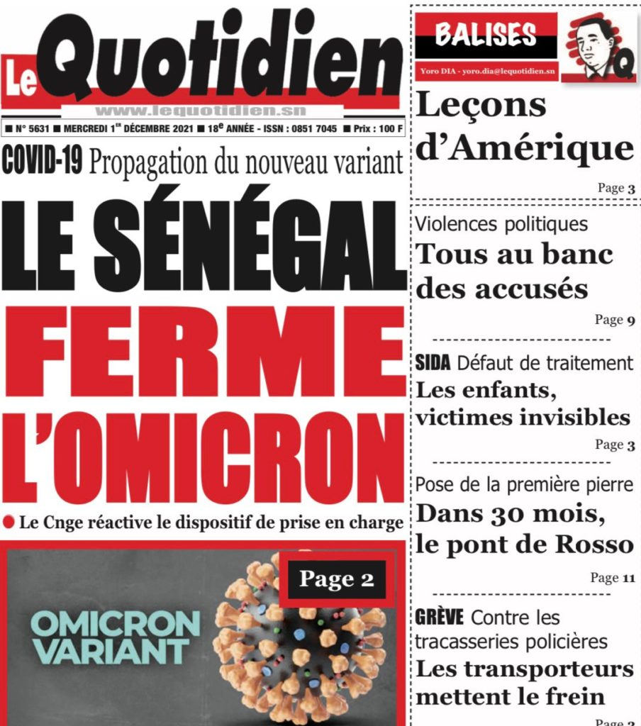 " /> La Une des quotidiens nationaux du mercredi 1er décembre 2021 Publié le 1 Déc, 2021 À DÉCOUVRIR Les Unes des quotidiens nationaux du 03 novembre 2025 3 Nov, 2025 Partager ->