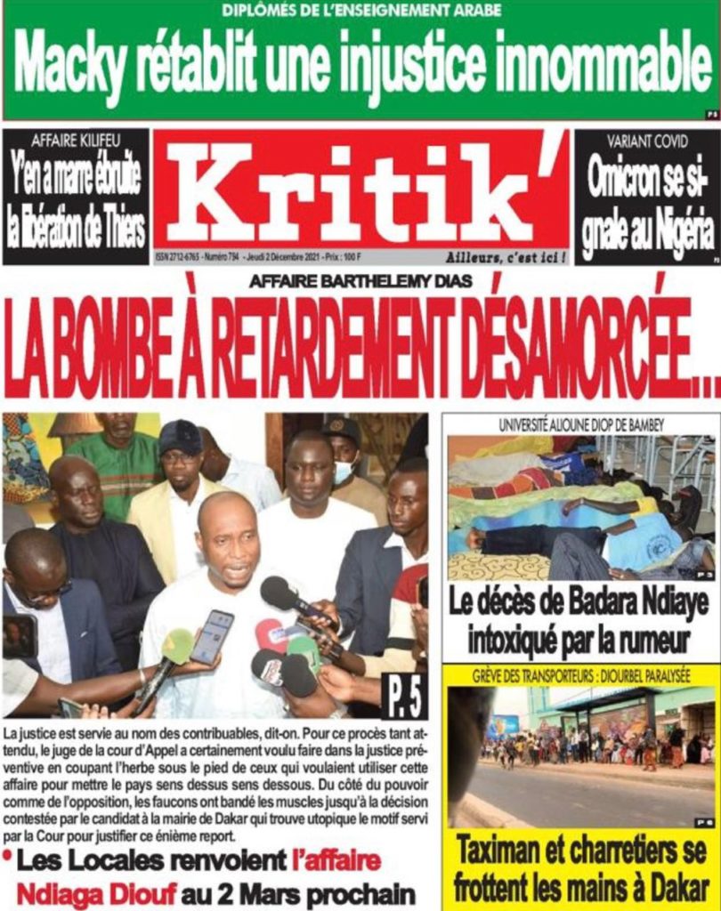 " /> La Une des quotidiens nationaux du jeudi 2 décembre 2021 Publié le 2 Déc, 2021 À DÉCOUVRIR Les Unes des quotidiens nationaux du 03 novembre 2025 3 Nov, 2025 Partager ->
