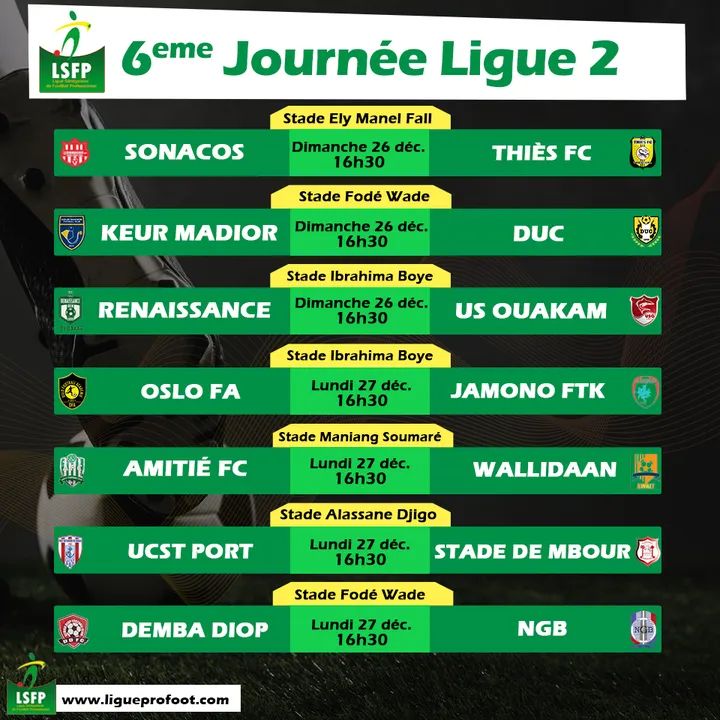 2- Ligue I et Ligue 2 : Les rencontres de la 6e journée