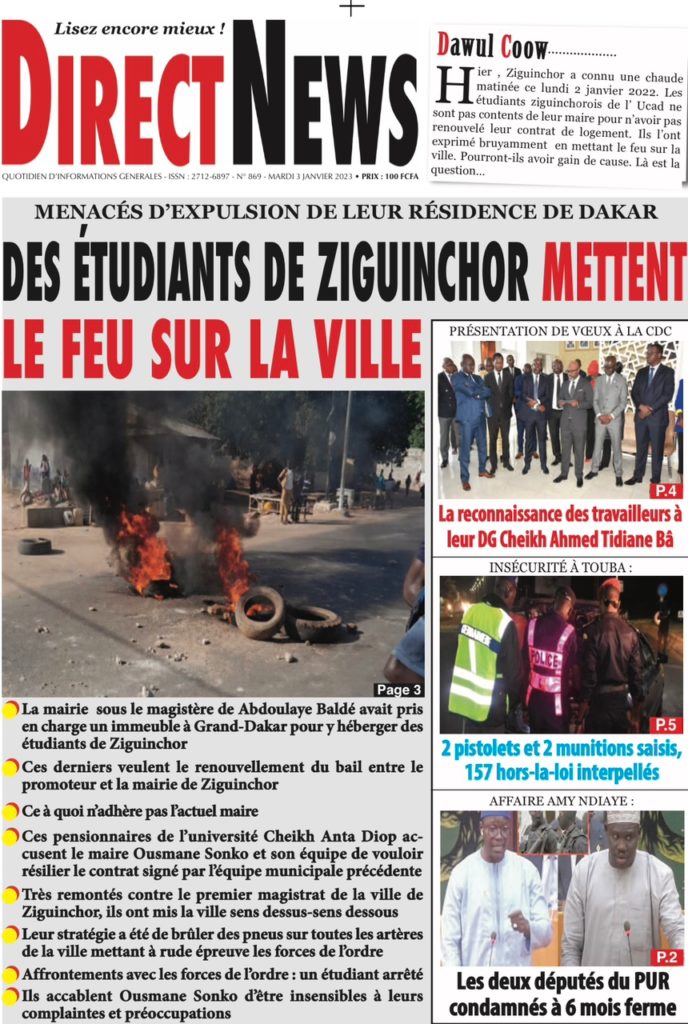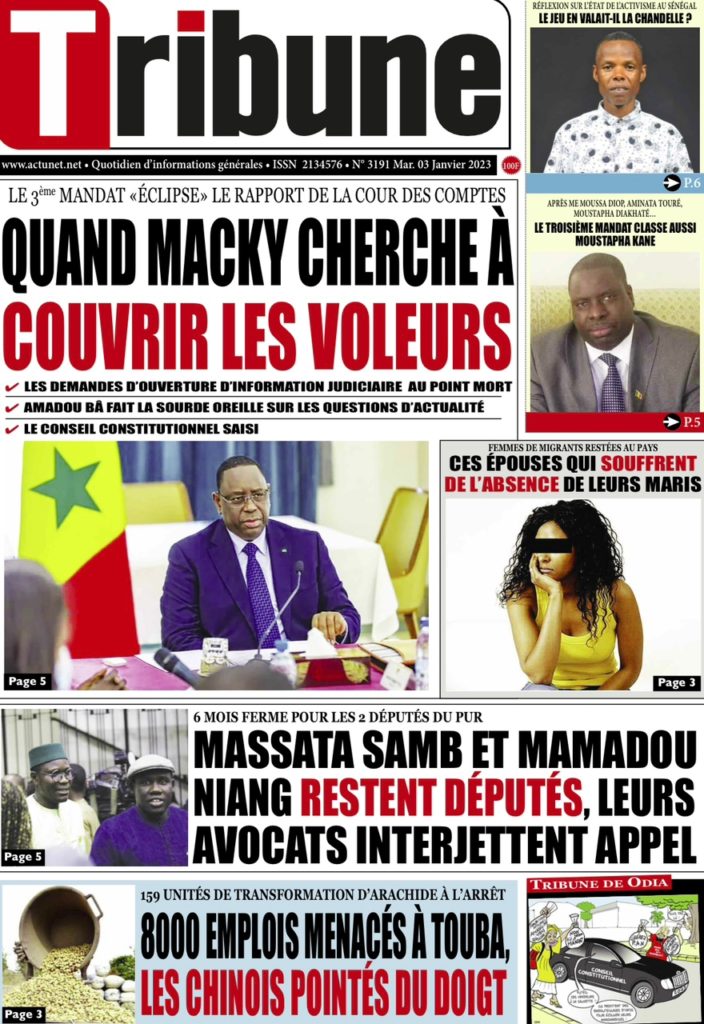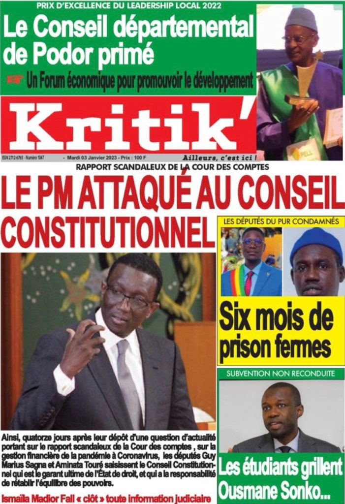 " /> La Une des Quotidiens Nationaux du 3 Janvier 2023 Publié le 3 Jan, 2023 À DÉCOUVRIR Les Unes des quotidiens nationaux du 10 novembre 2025 10 Nov, 2025 La Rédaction de SenCaféActu Partager ->
