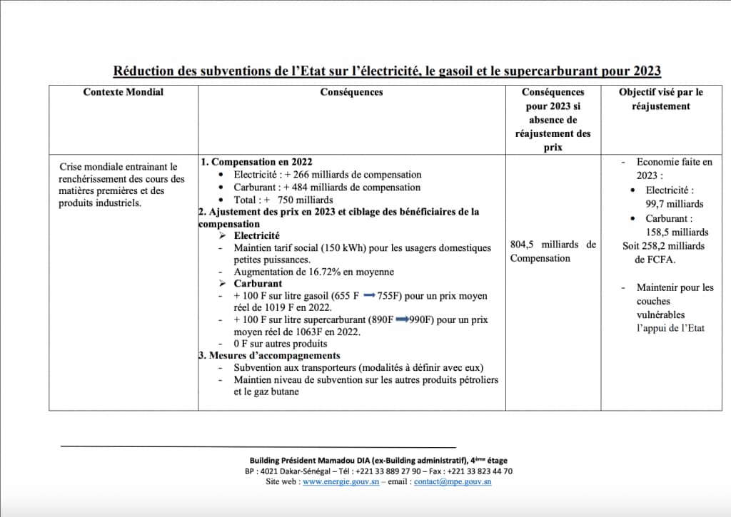 L’Etat du Sénégal a officialisé ses hausses des prix de l’électricité et du carburant. Il vient de publier le document qui détaille cette mesure qui risque de tomber, comme un coup de massue, sur le moral des ménages. Vous pouvez les consulter le document ci-dessous