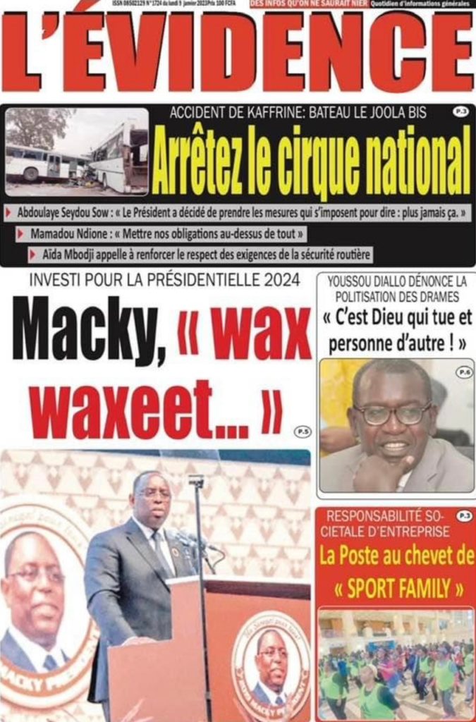 " /> La Une des Quotidiens Nationaux du 9 Janvier 2022 Publié le 9 Jan, 2023 À DÉCOUVRIR SenCaféActu du 25 novembre 2025 25 Nov, 2025 La Rédaction de SenCaféActu Partager ->