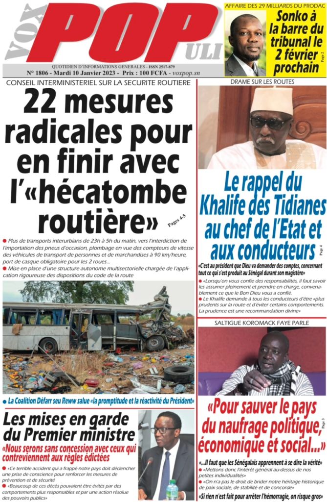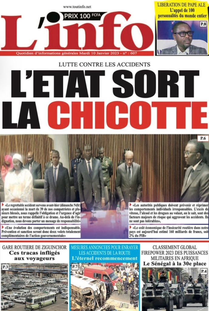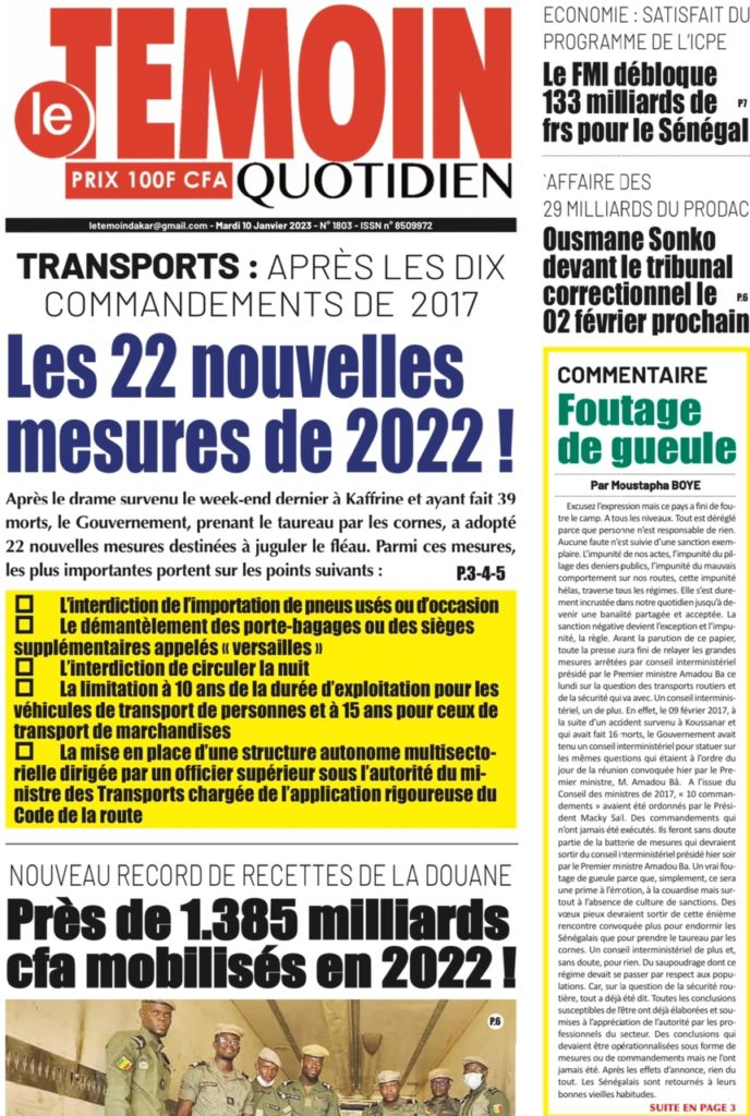 " /> La Une des Quotidiens Nationaux du 10 Janvier 2023 Publié le 10 Jan, 2023 À DÉCOUVRIR Les Unes des quotidiens nationaux du 25 octobre 2025 25 Oct, 2025 La Rédaction de SenCaféActu Partager ->