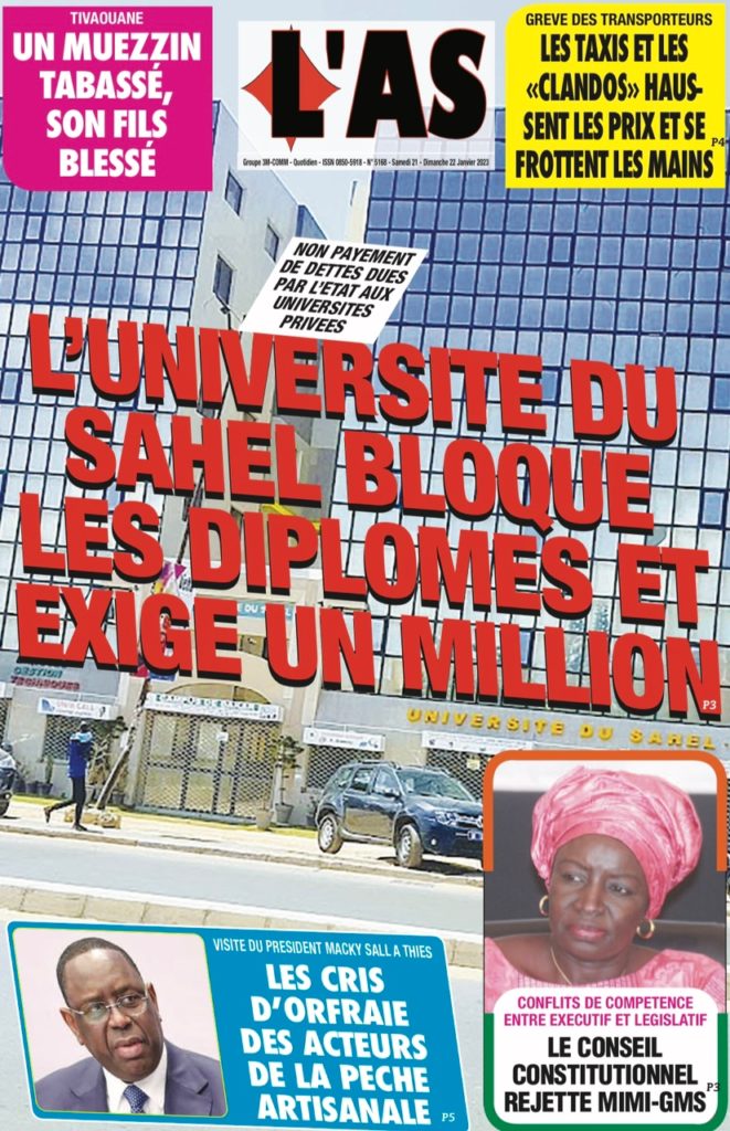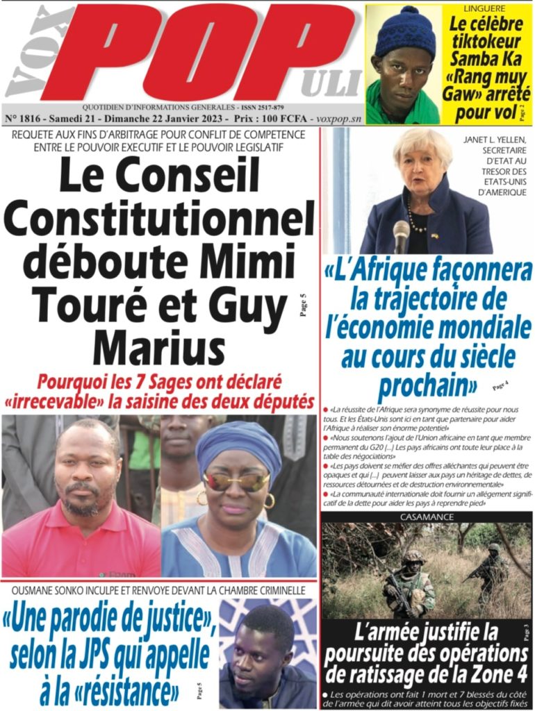 " /> La Une des Quotidiens Nationaux du 21 Janvier 2023 Publié le 21 Jan, 2023 À DÉCOUVRIR Les Unes des quotidiens nationaux du 31 octobre 2025 31 Oct, 2025 La Rédaction de SenCaféActu Partager ->