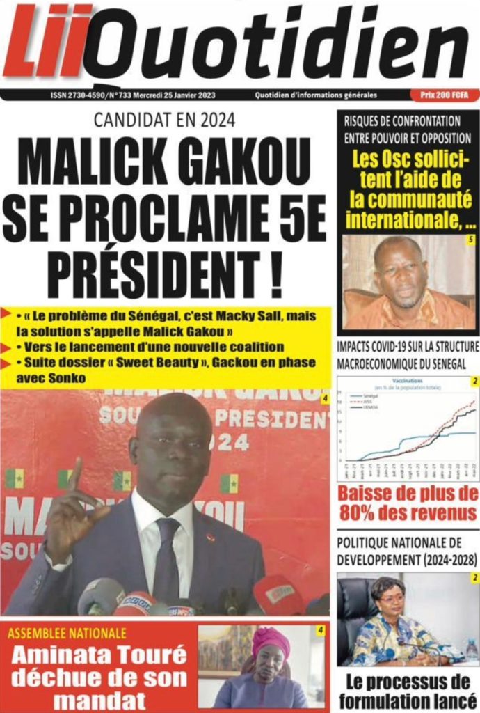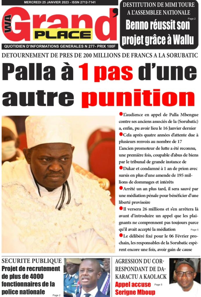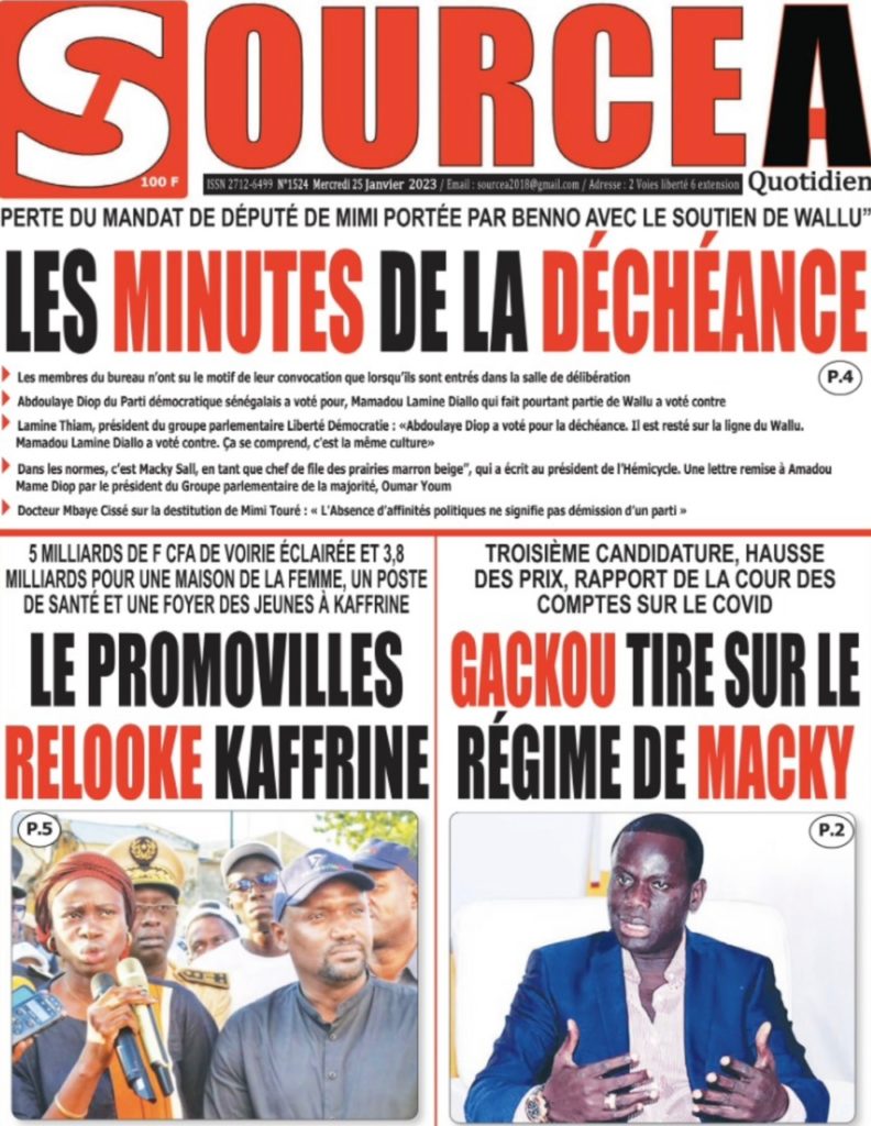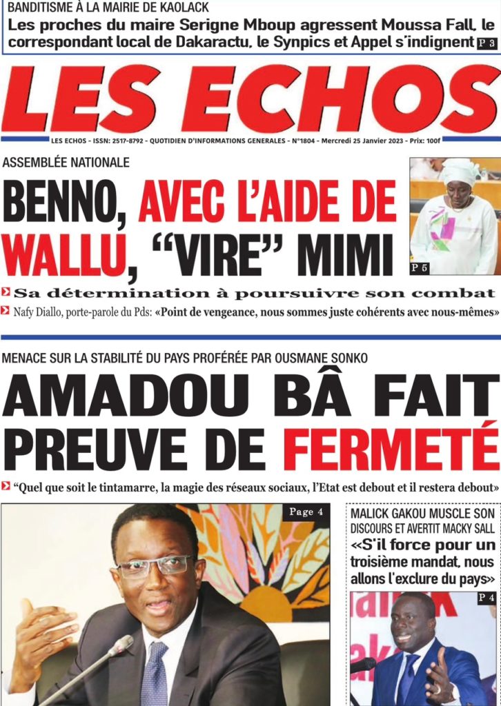 " /> La Une des Quotidiens Nationaux du 25 Janvier 2023 Publié le 25 Jan, 2023 À DÉCOUVRIR Les Unes des quotidiens nationaux du 17 novembre 2025 17 Nov, 2025 La Rédaction de SenCaféActu Partager ->
