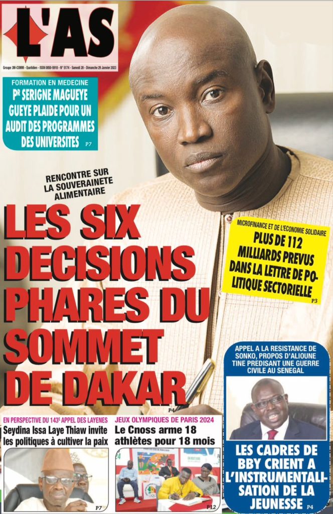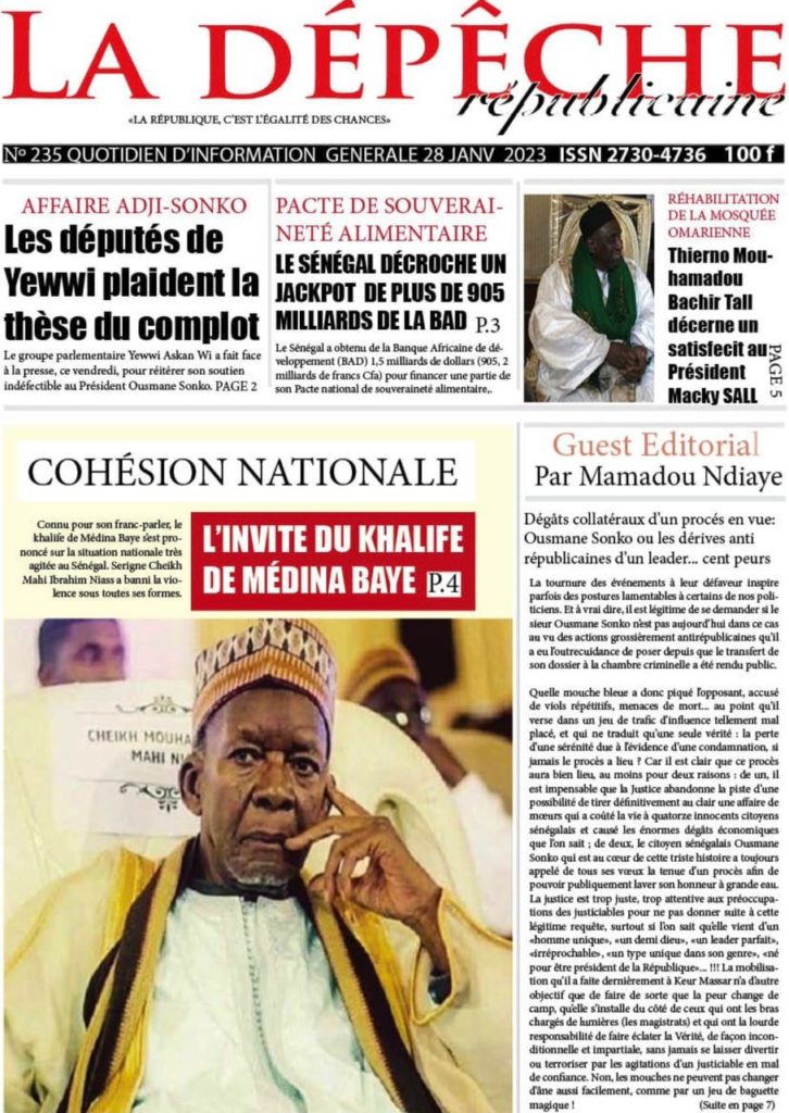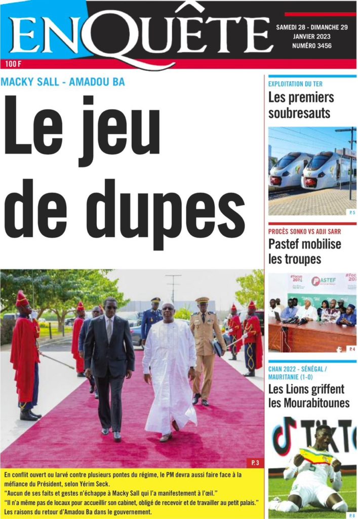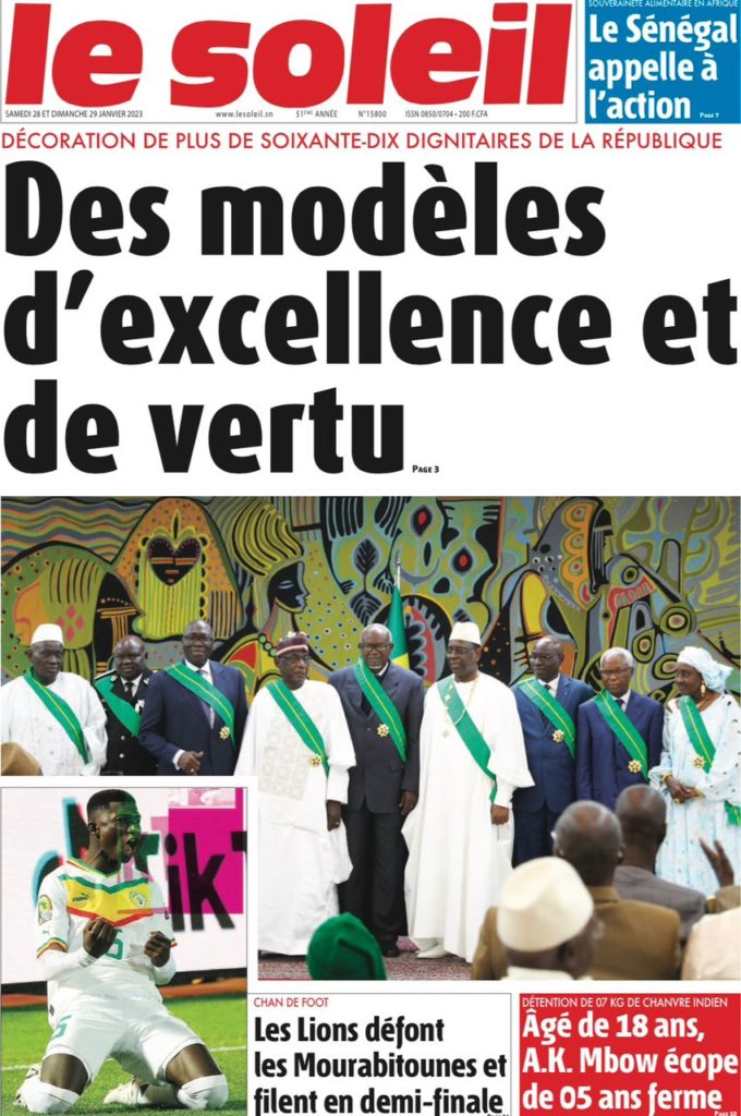 " /> La Une des Quotidiens Nationaux du 28 Janvier 2023 Publié le 28 Jan, 2023 À DÉCOUVRIR Les Unes des quotidiens nationaux du 31 octobre 2025 31 Oct, 2025 La Rédaction de SenCaféActu Partager ->