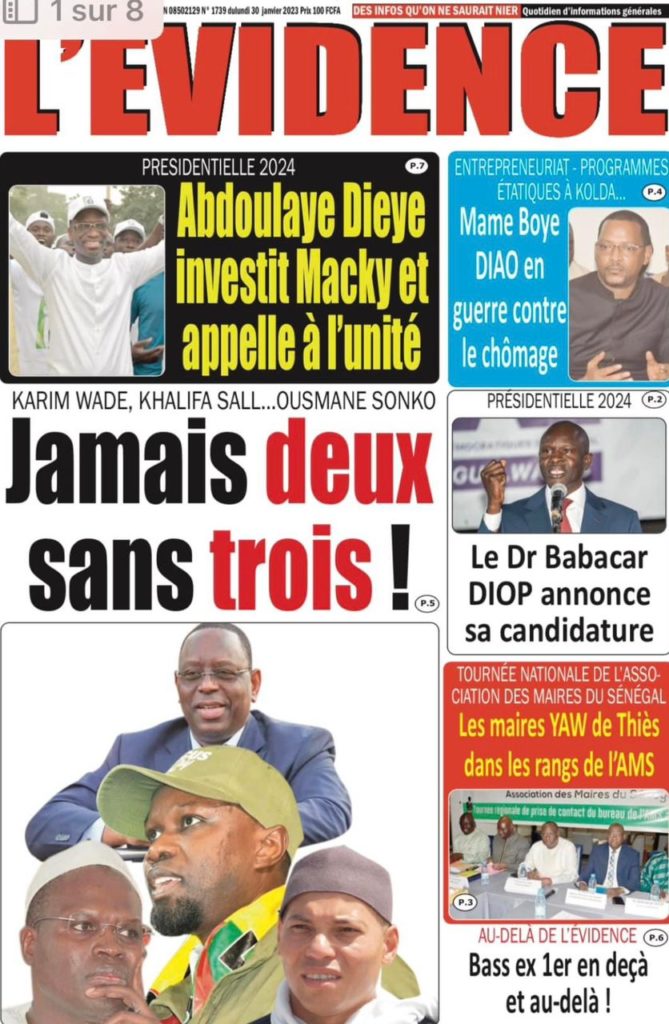 " /> La Une des Quotidiens Nationaux du 30 Janvier 2023 Publié le 30 Jan, 2023 À DÉCOUVRIR Les Unes des quotidiens nationaux du 31 octobre 2025 31 Oct, 2025 La Rédaction de SenCaféActu Partager ->