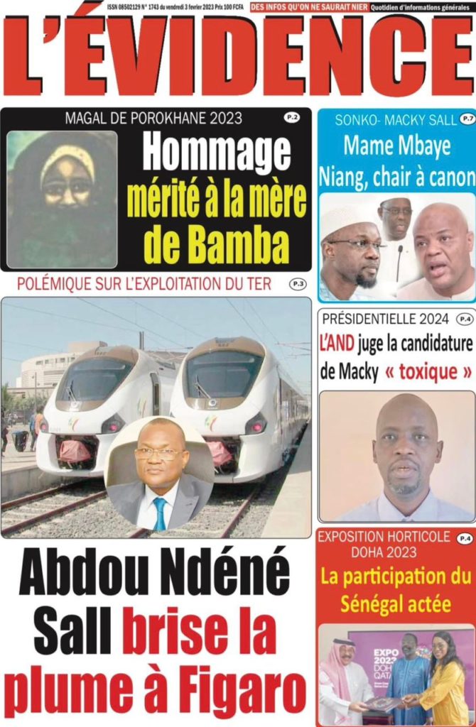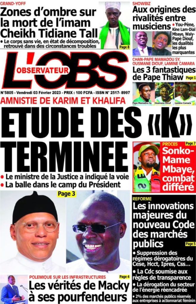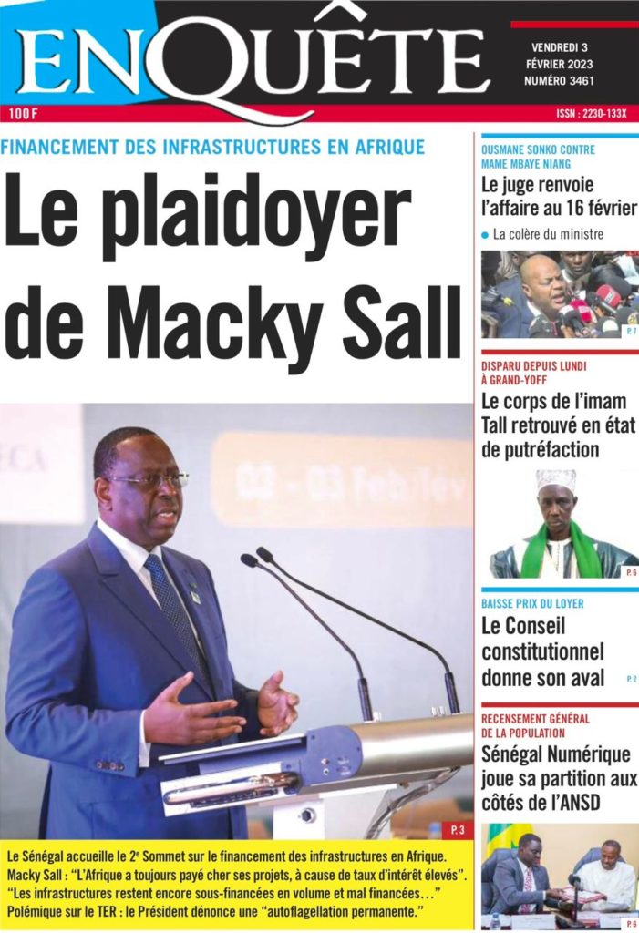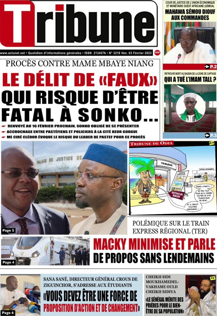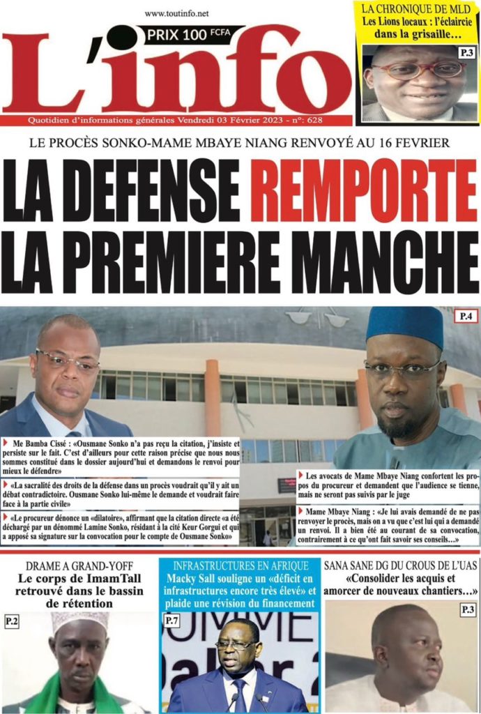 " /> La Une des Quotidiens Nationaux du 3 Février 2023 Publié le 3 Fév, 2023 À DÉCOUVRIR Les Unes des quotidiens nationaux du 31 octobre 2025 31 Oct, 2025 La Rédaction de SenCaféActu Partager ->