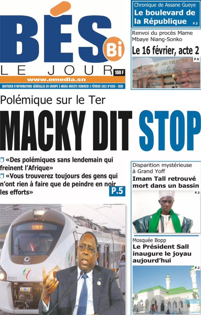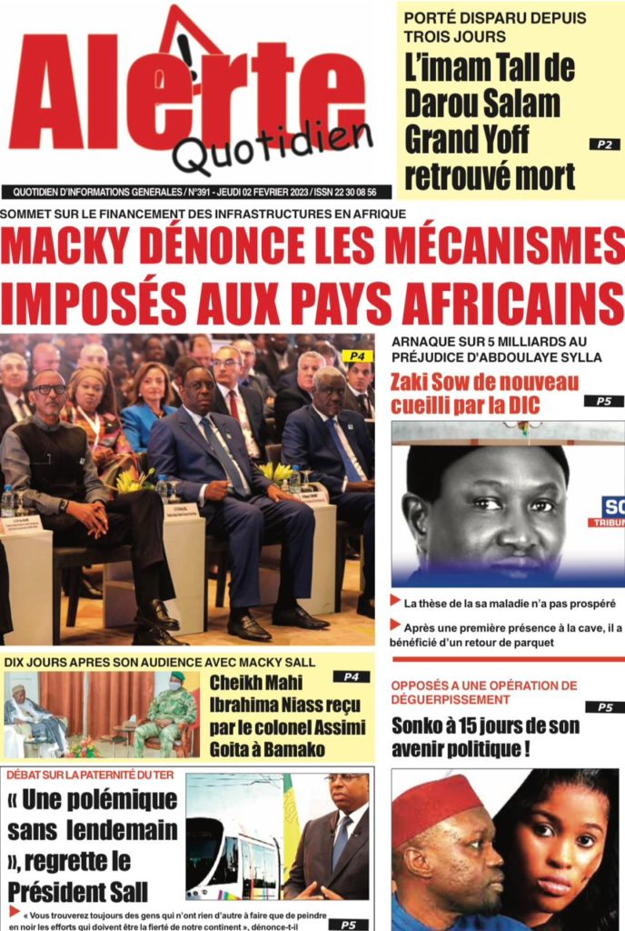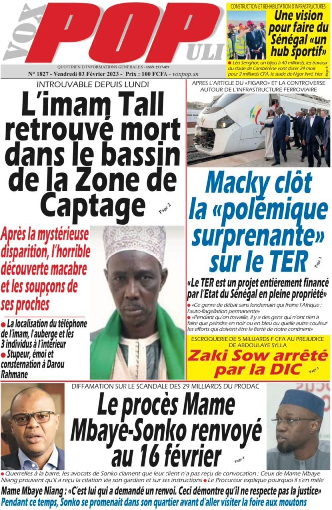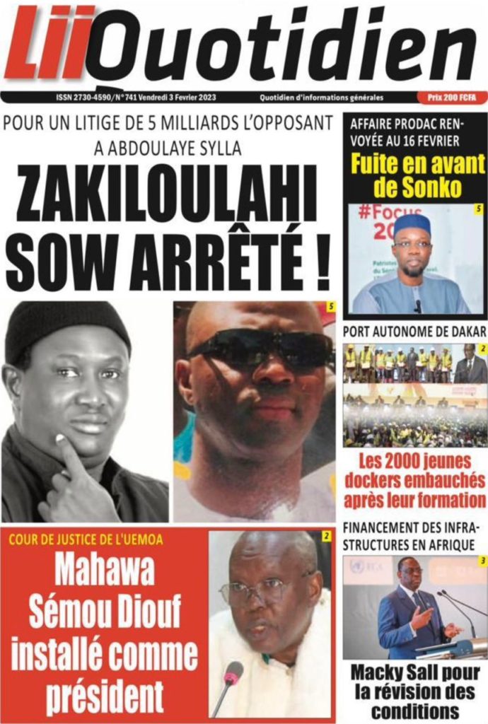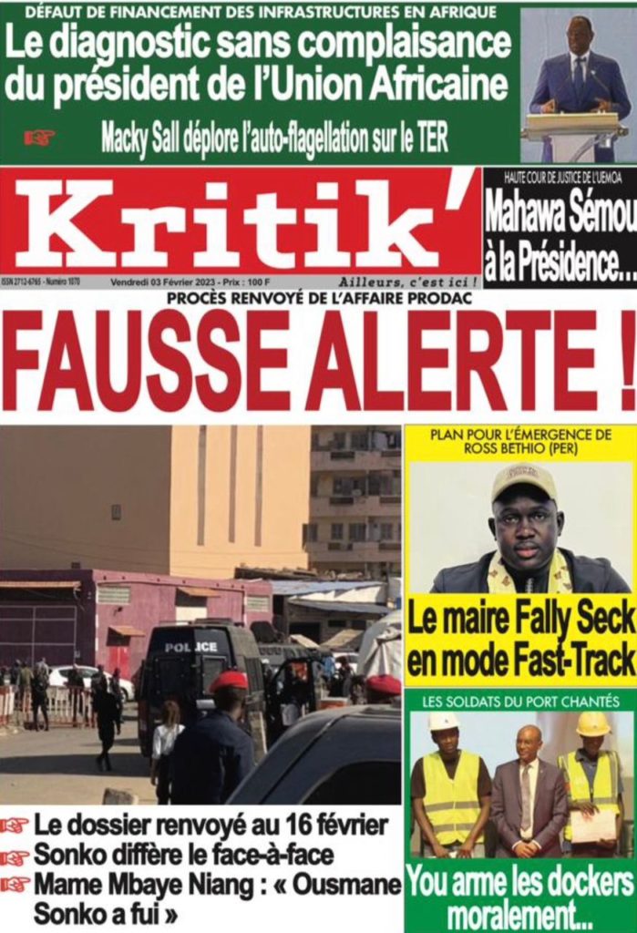 " /> La Une des Quotidiens Nationaux du 3 Février 2023 Publié le 3 Fév, 2023 À DÉCOUVRIR Les Unes des quotidiens nationaux du 31 octobre 2025 31 Oct, 2025 La Rédaction de SenCaféActu Partager ->