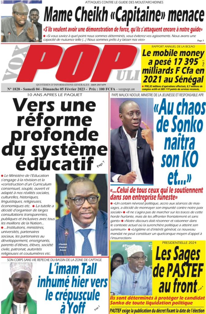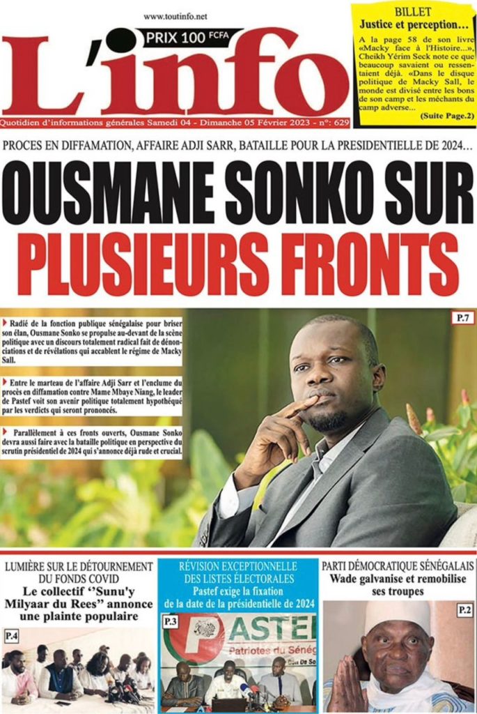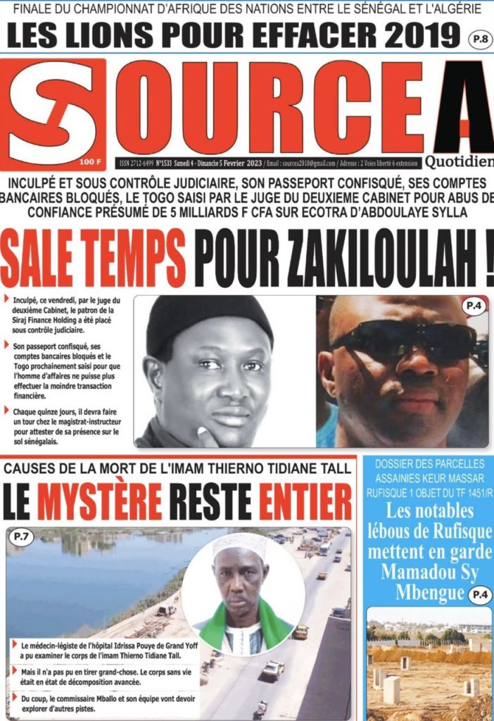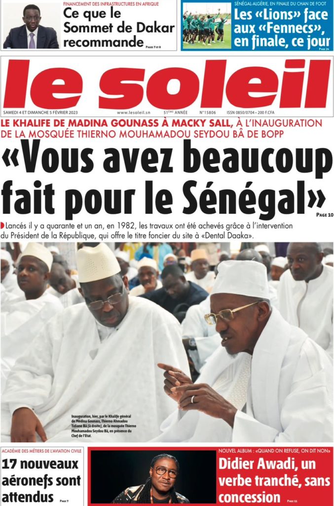 " /> La Une des Quotidiens Nationaux du 4 Février 2023 Publié le 4 Fév, 2023 À DÉCOUVRIR Les Unes des quotidiens nationaux du 31 octobre 2025 31 Oct, 2025 La Rédaction de SenCaféActu Partager ->