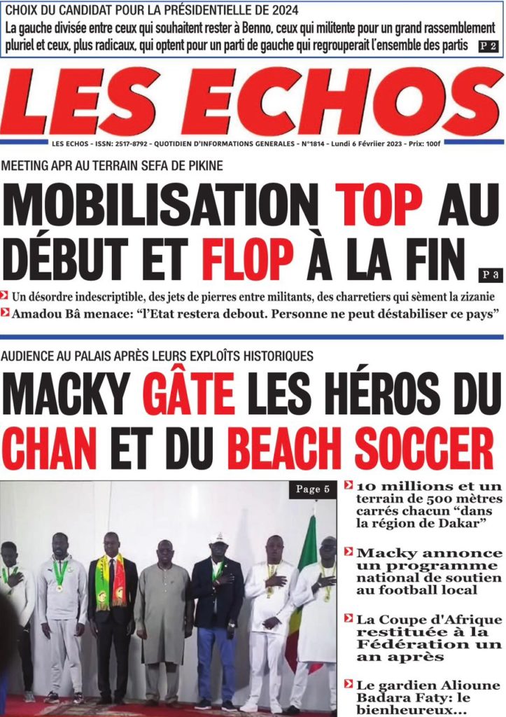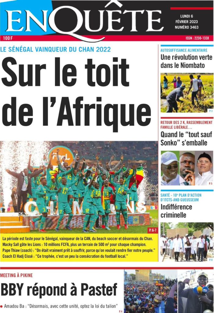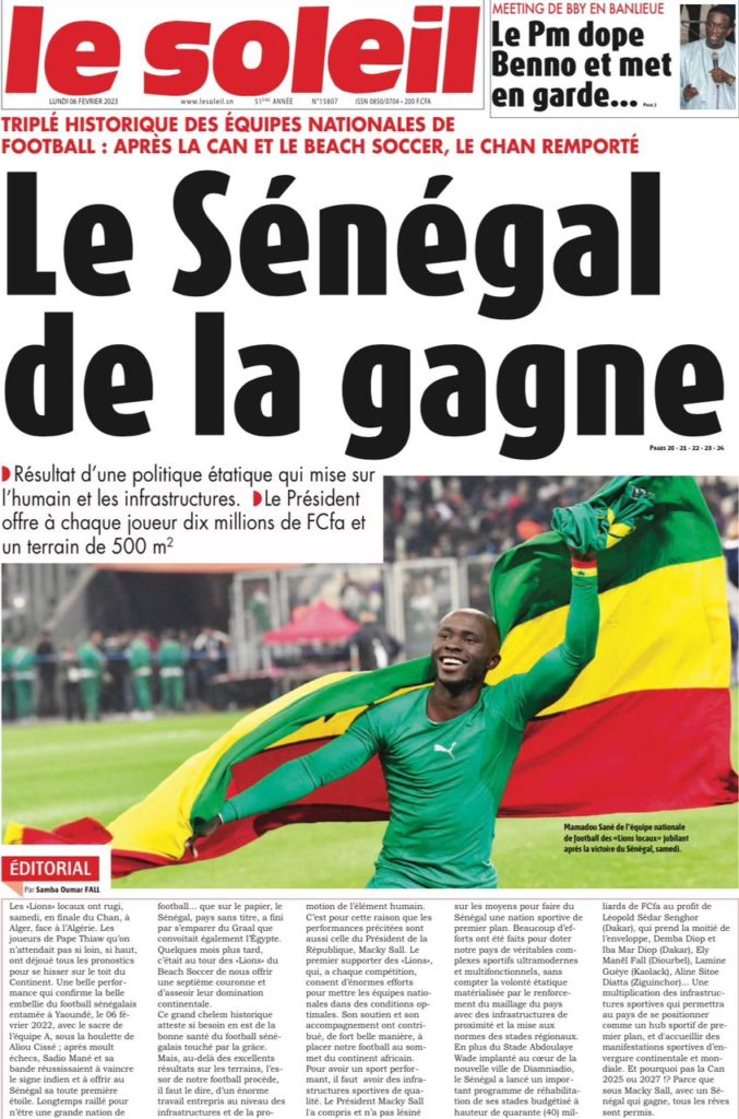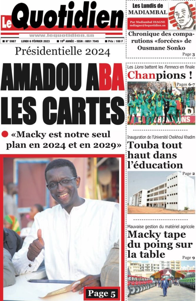 " /> La Une des Quotidiens Nationaux du 6 Février 2023 Publié le 6 Fév, 2023 À DÉCOUVRIR Les Unes des quotidiens nationaux du 24 octobre 2025 24 Oct, 2025 La Rédaction de SenCaféActu Partager ->