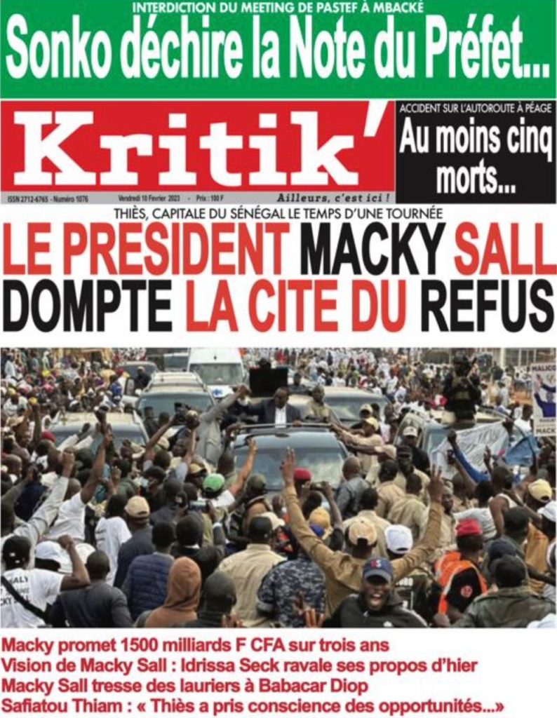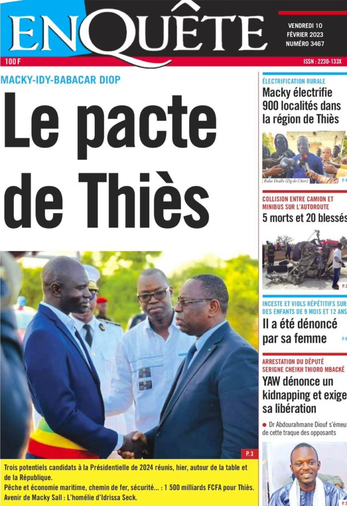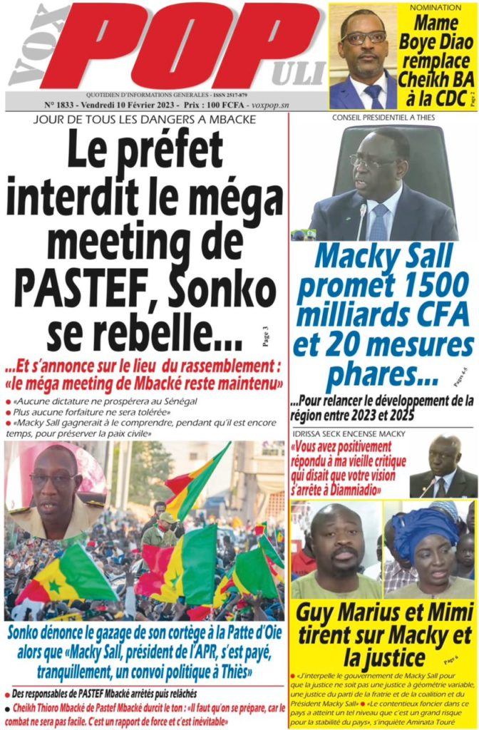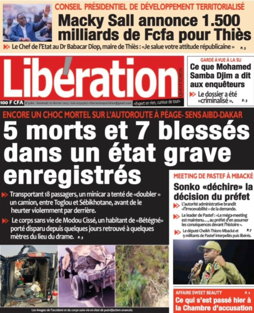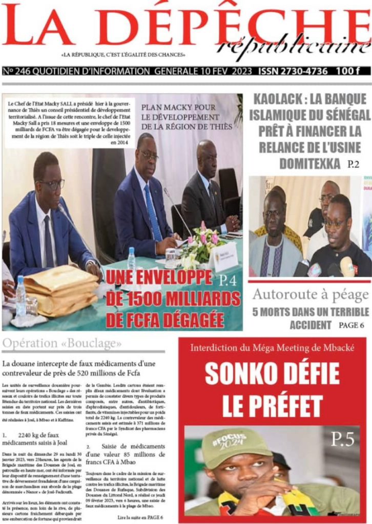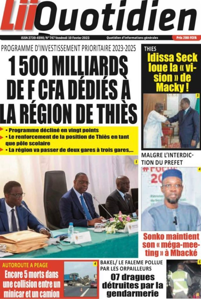 " /> La Une des Quotidiens Nationaux du 10 Février 2023 Publié le 10 Fév, 2023 À DÉCOUVRIR Les Unes des quotidiens nationaux du 07 novembre 2025 7 Nov, 2025 La Rédaction de SenCaféActu Partager ->
