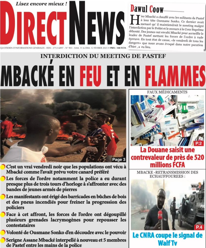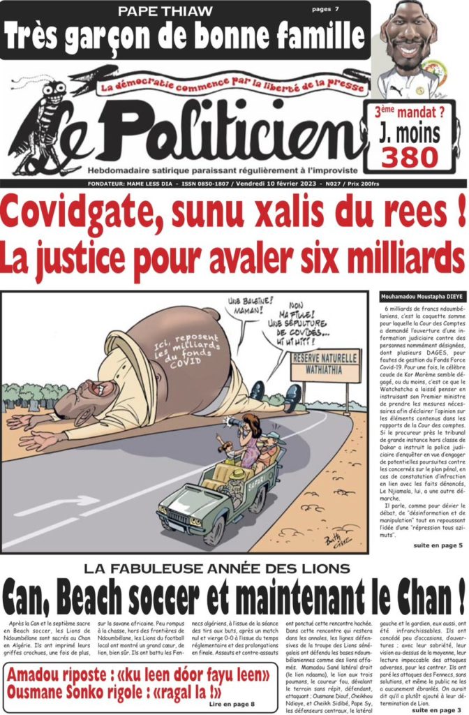 " /> La Une des Quotidiens Nationaux du 11 Février 2023 Publié le 11 Fév, 2023 À DÉCOUVRIR Les Unes des quotidiens nationaux du 07 novembre 2025 7 Nov, 2025 La Rédaction de SenCaféActu Partager ->