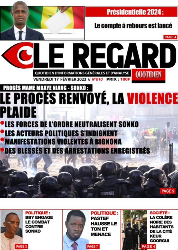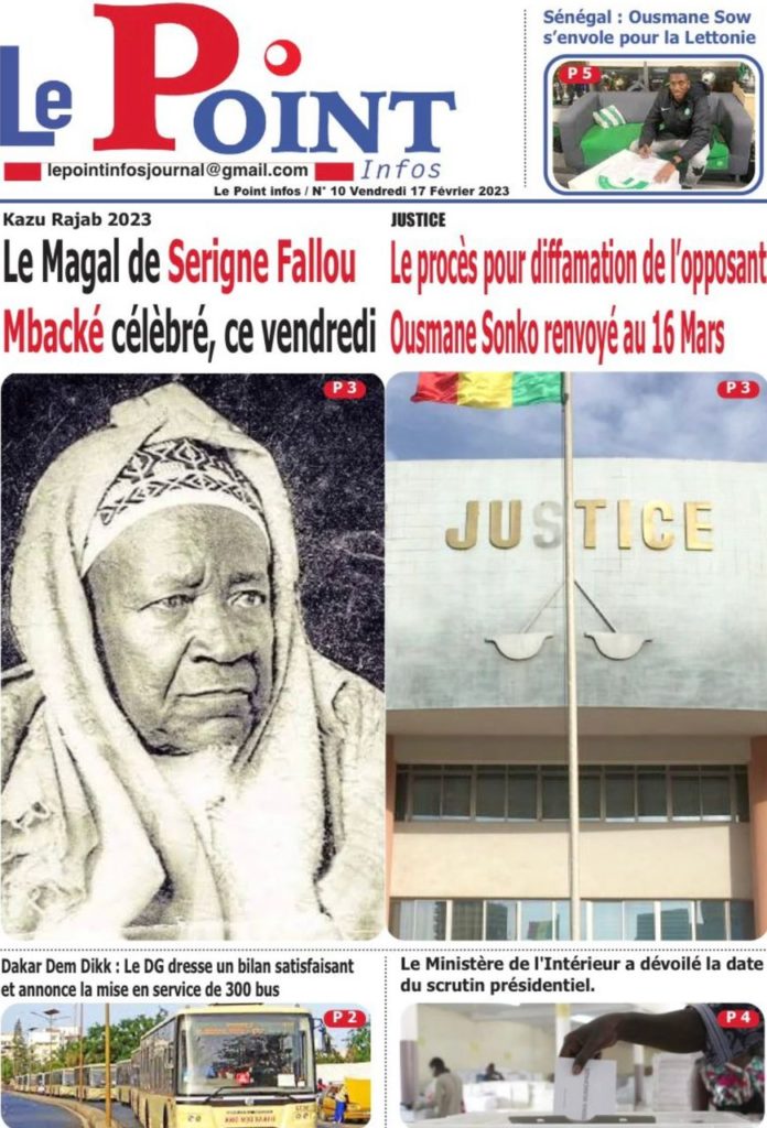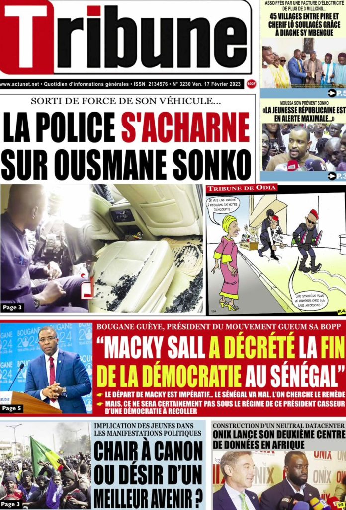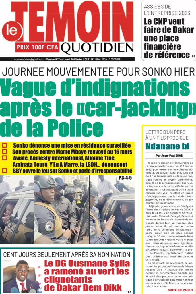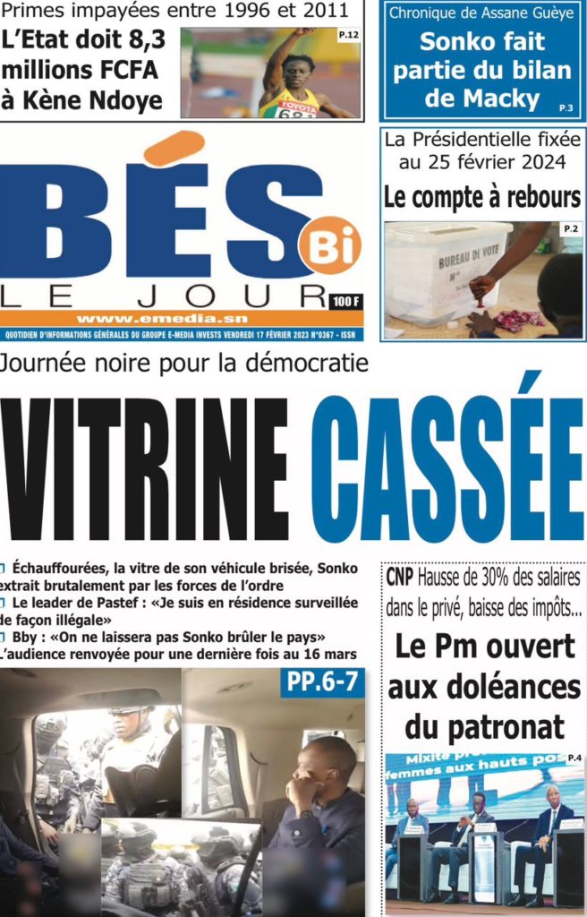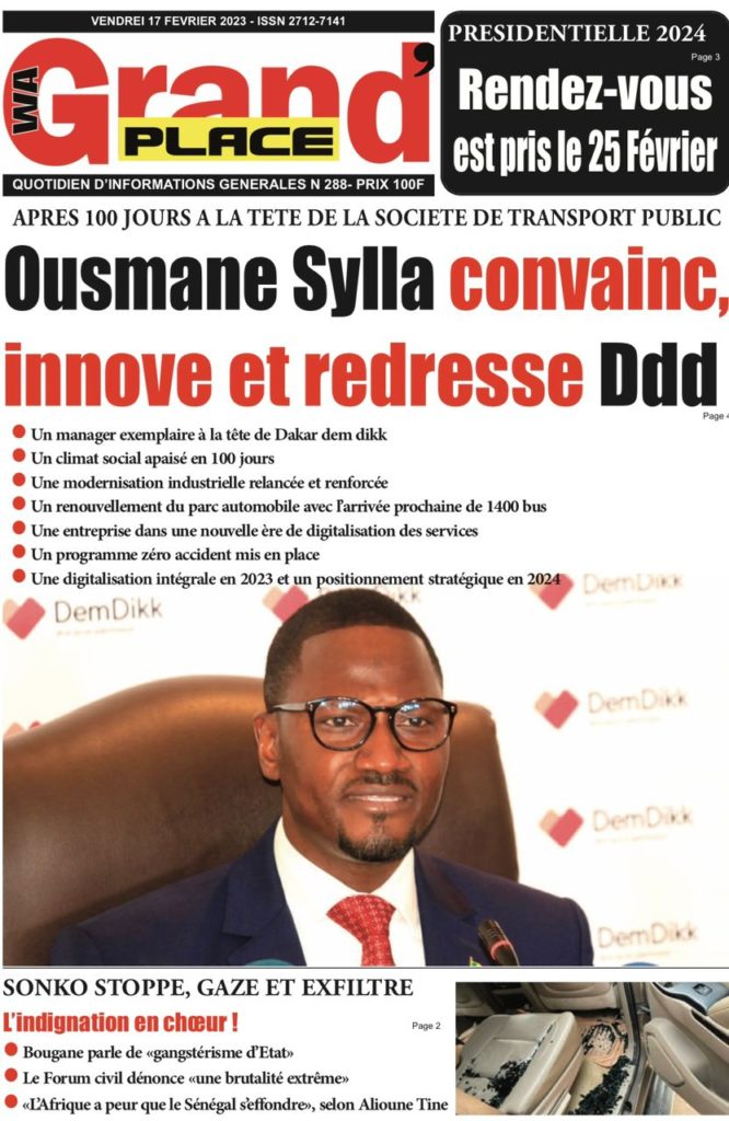 " /> La Une des Quotidiens Nationaux du 17 Février 2023 Publié le 17 Fév, 2023 À DÉCOUVRIR Les Unes des quotidiens nationaux du 07 novembre 2025 7 Nov, 2025 La Rédaction de SenCaféActu Partager ->