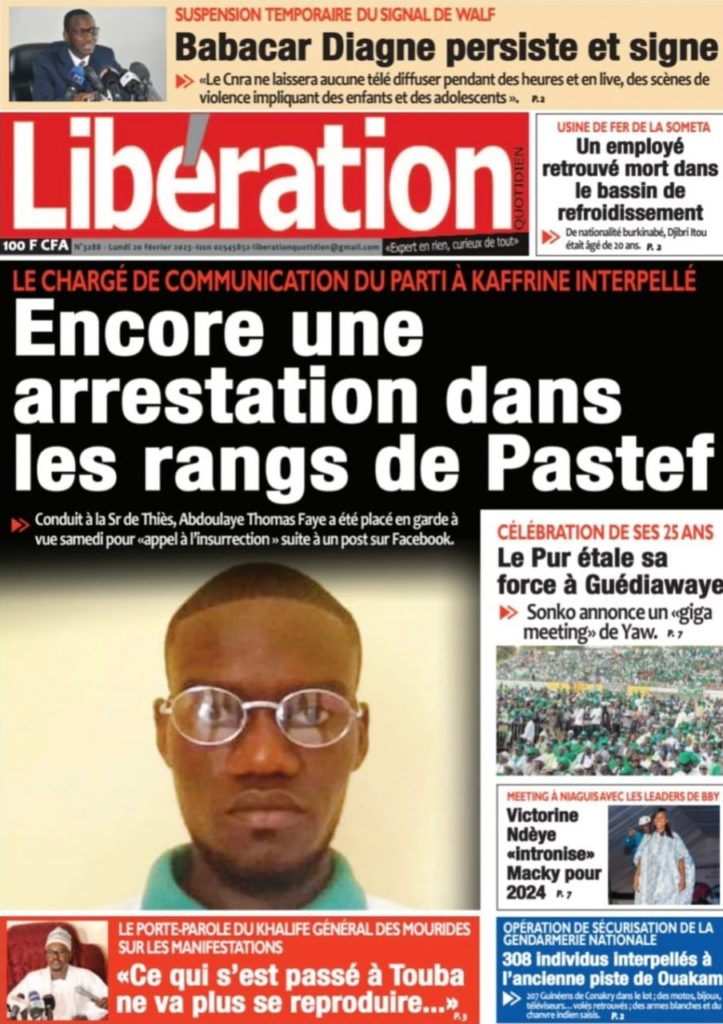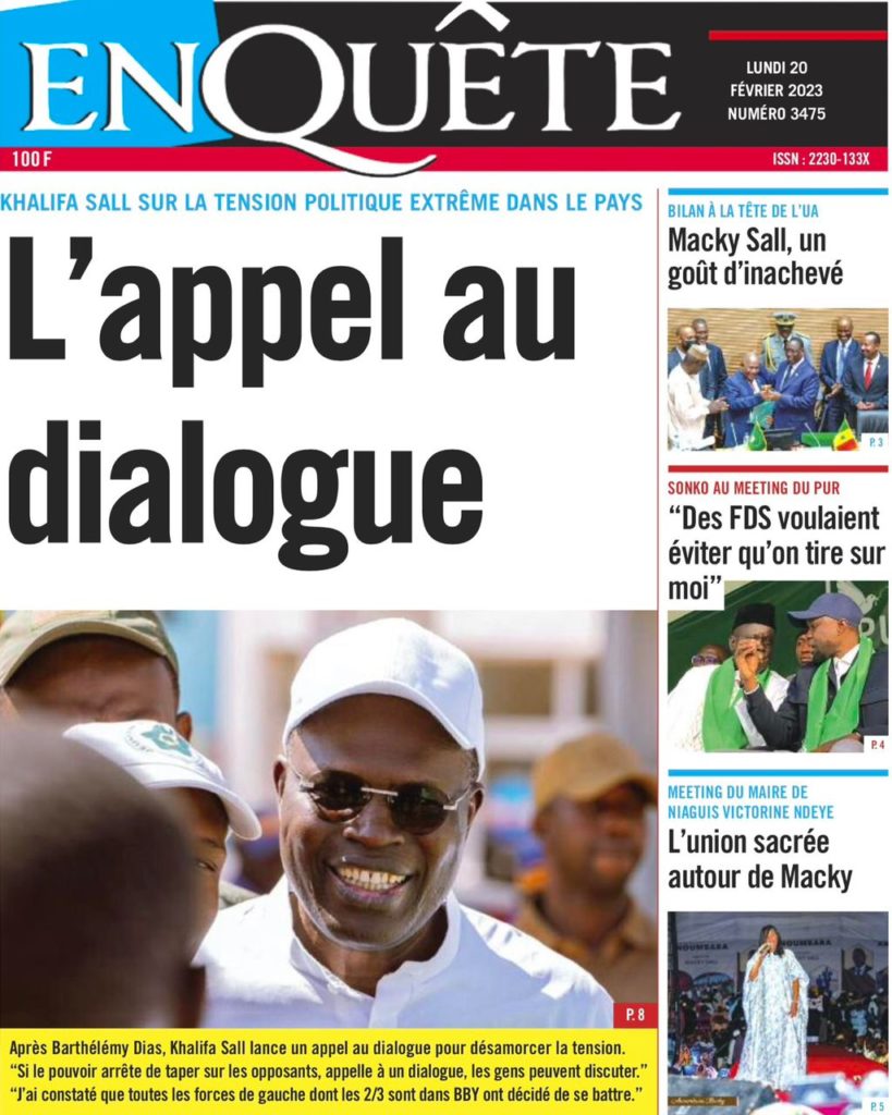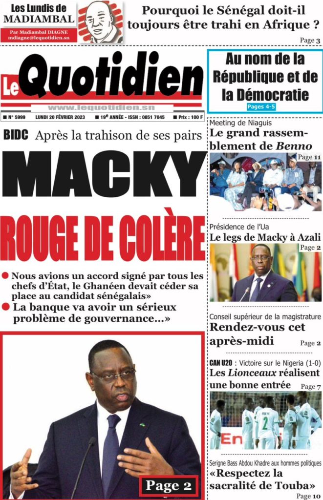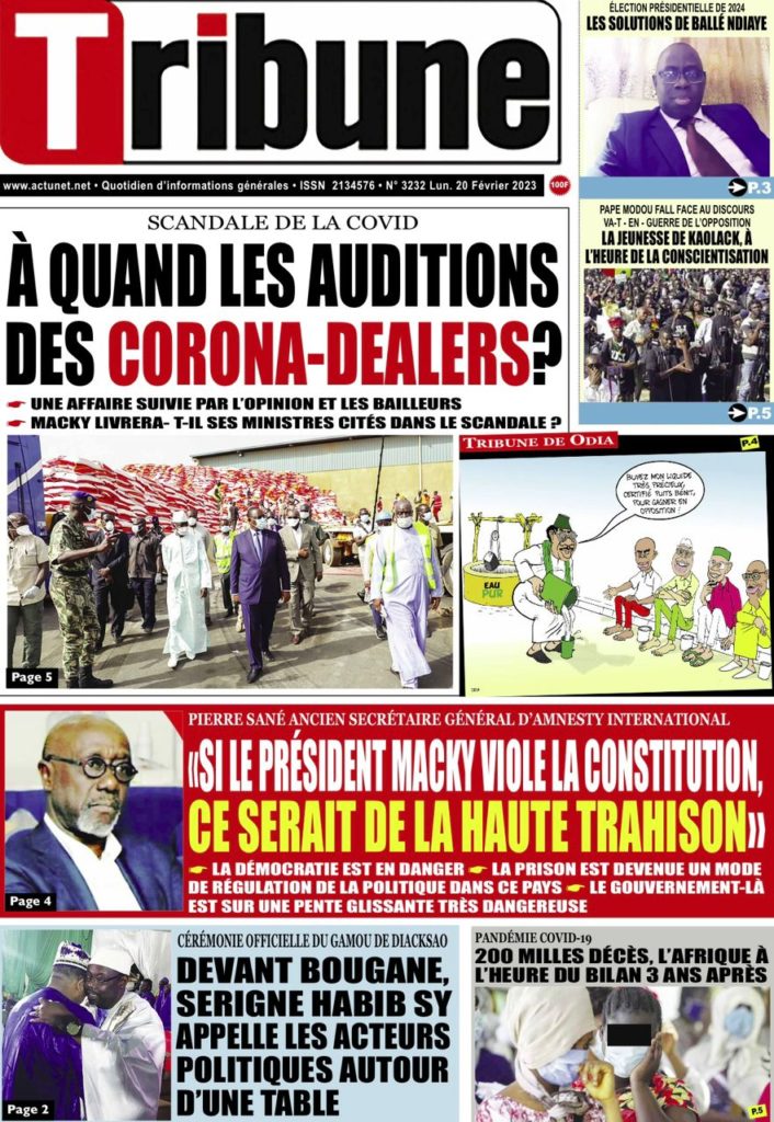 " /> La Une des Quotidiens Nationaux du 20 Février 2023 Publié le 20 Fév, 2023 À DÉCOUVRIR Les Unes des quotidiens nationaux du 31 octobre 2025 31 Oct, 2025 La Rédaction de SenCaféActu Partager ->