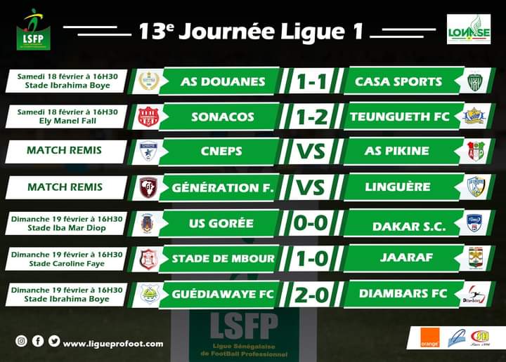 Avec ce succès, les crabes récupèrent la deuxième place du championnat et permettent par ailleurs au Casa Sports qui a fait match nul contre AS Douanes (1-1) d’être seul leader du championnat à l’issue de cette journée. Diambars est lui 3e.