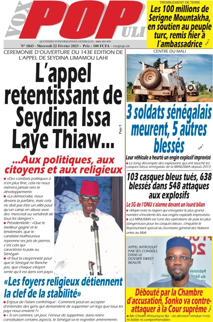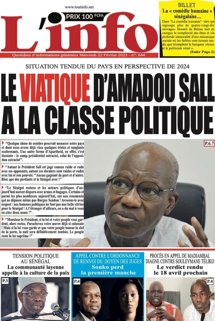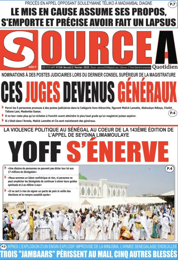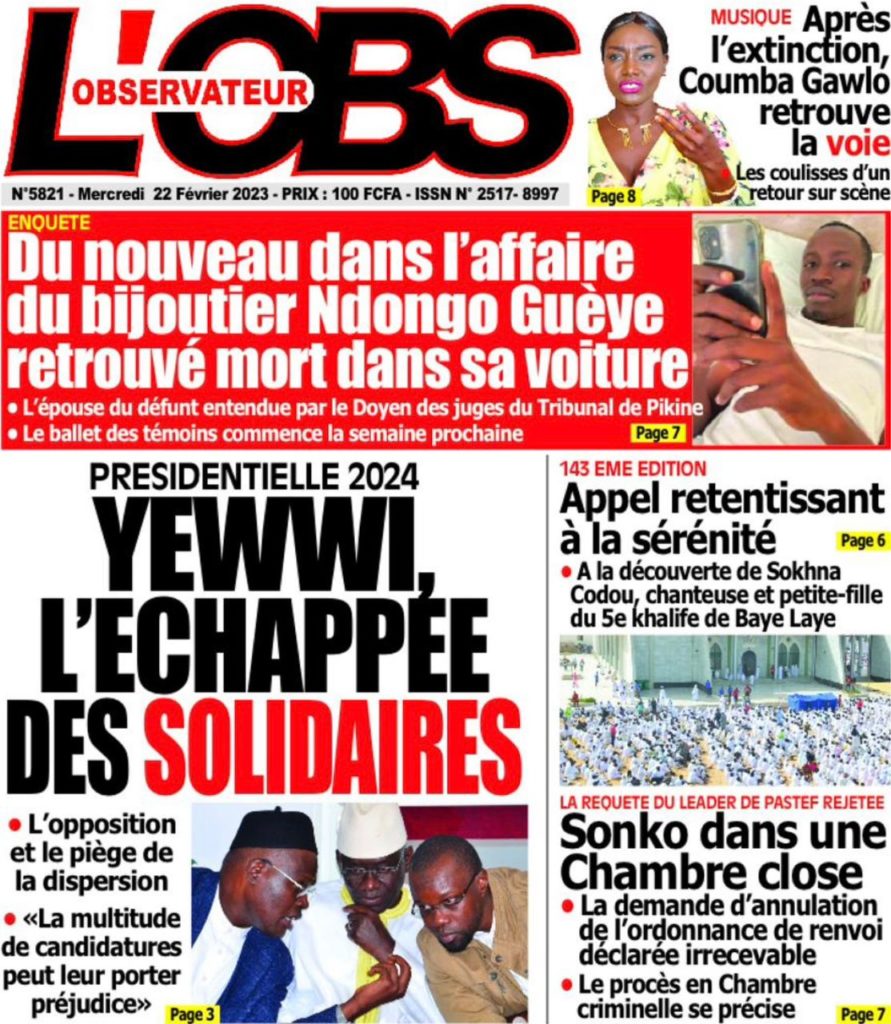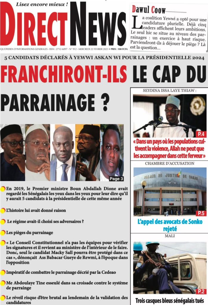 " /> La Une des Quotidiens Nationaux du 22 Février 2023 Publié le 22 Fév, 2023 À DÉCOUVRIR Les Unes des quotidiens nationaux du 07 novembre 2025 7 Nov, 2025 La Rédaction de SenCaféActu Partager ->