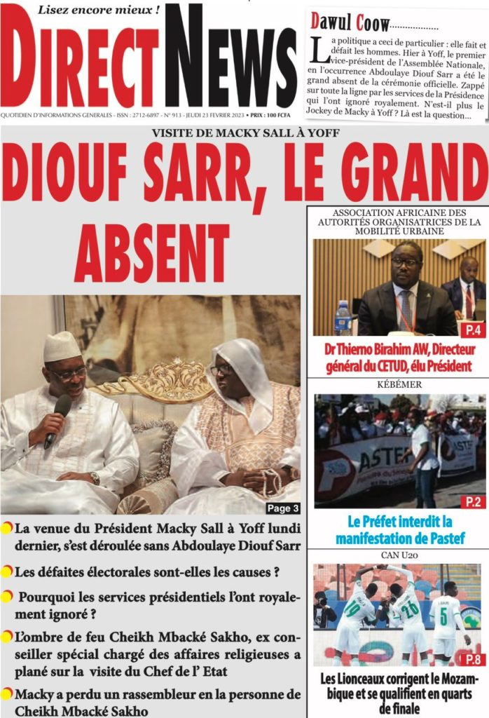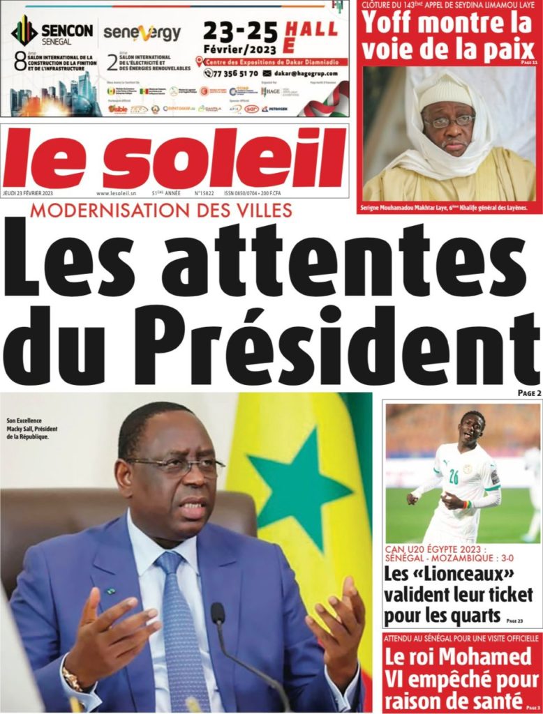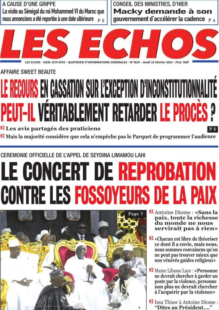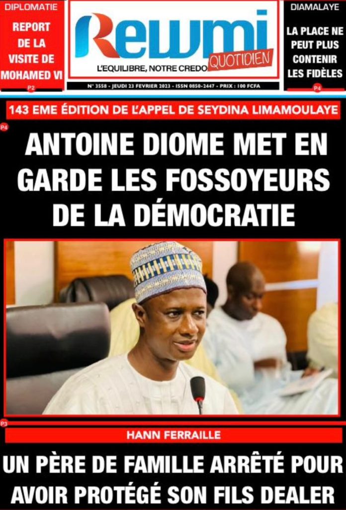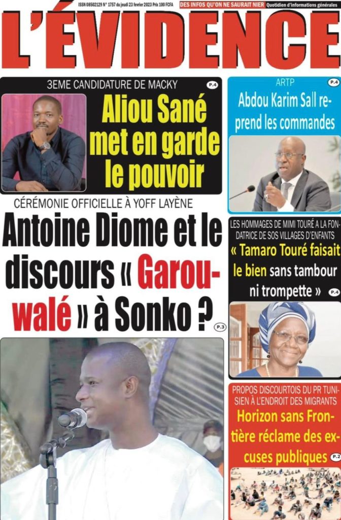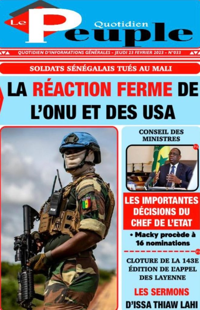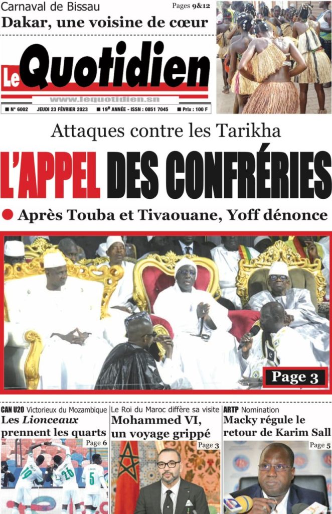 " /> La Une des Quotidiens Nationaux du 23 Février 2023 Publié le 23 Fév, 2023 À DÉCOUVRIR Les Unes des quotidiens nationaux du 06 novembre 2025 6 Nov, 2025 La Rédaction de SenCaféActu Partager ->