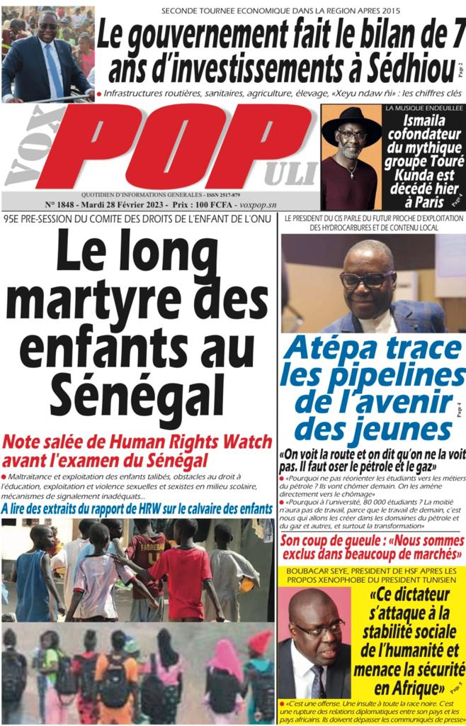 " /> La Une des Quotidiens Nationaux du 28 Février 2023 Publié le 28 Fév, 2023 À DÉCOUVRIR Les Unes des quotidiens nationaux du 15 novembre 2025 15 Nov, 2025 La Rédaction de SenCaféActu Partager ->