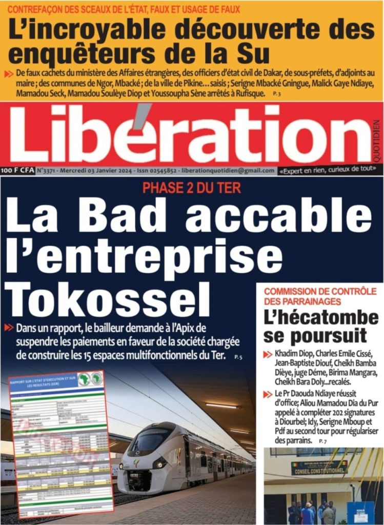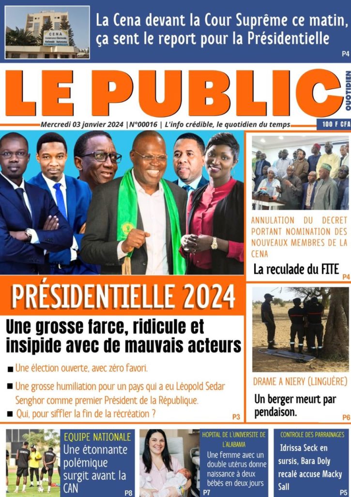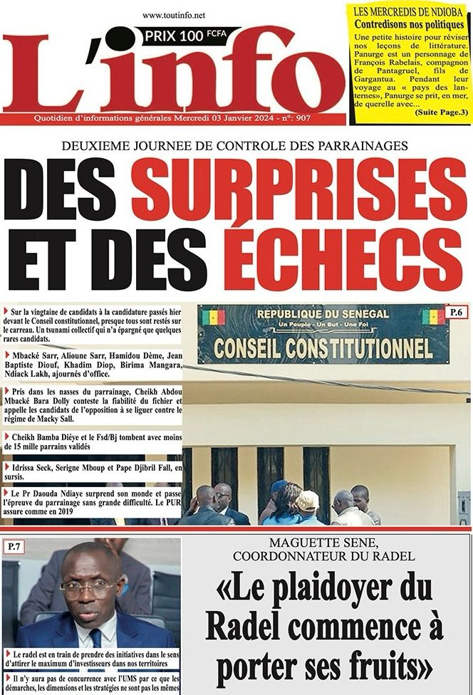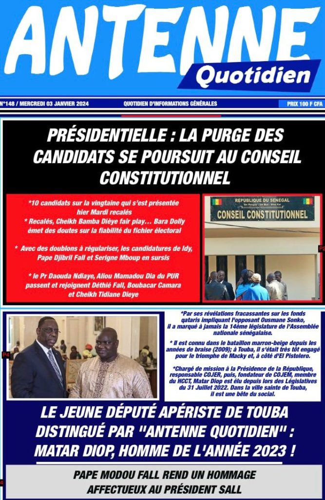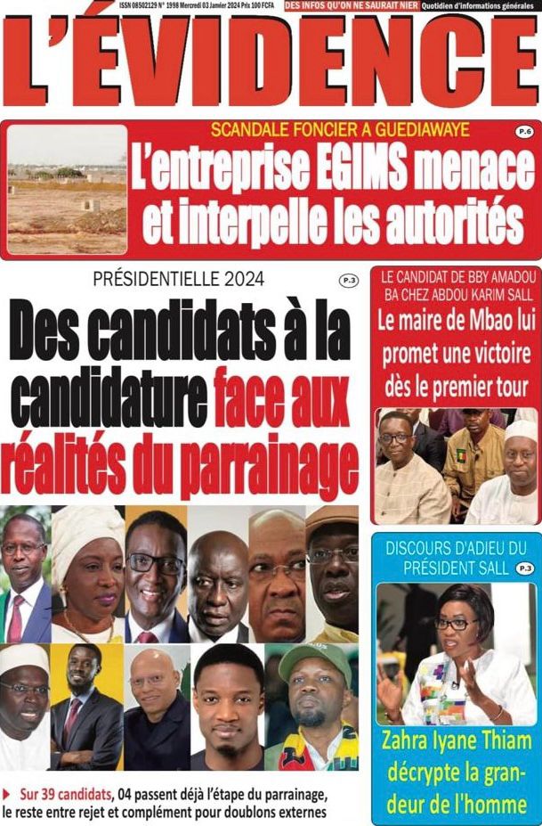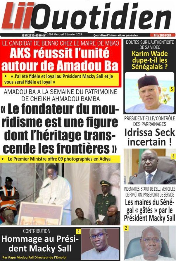 " /> La Une des Quotidiens Nationaux du 3 Janvier 2024 Publié le 3 Jan, 2024 À DÉCOUVRIR Les Unes des quotidiens nationaux du 07 novembre 2025 7 Nov, 2025 La Rédaction de SenCaféActu Partager ->