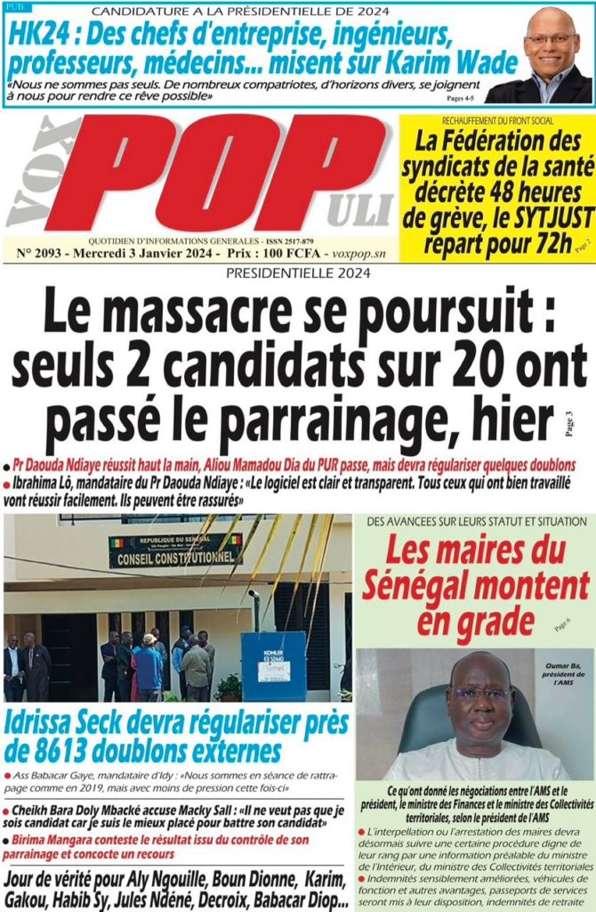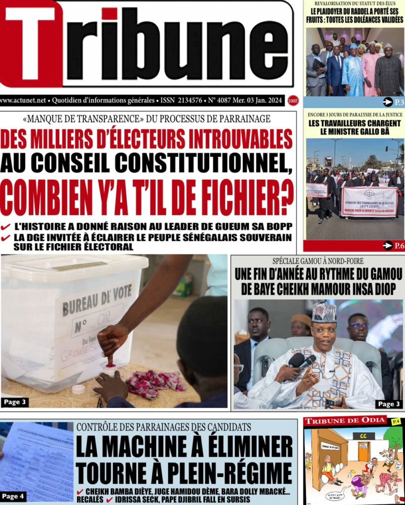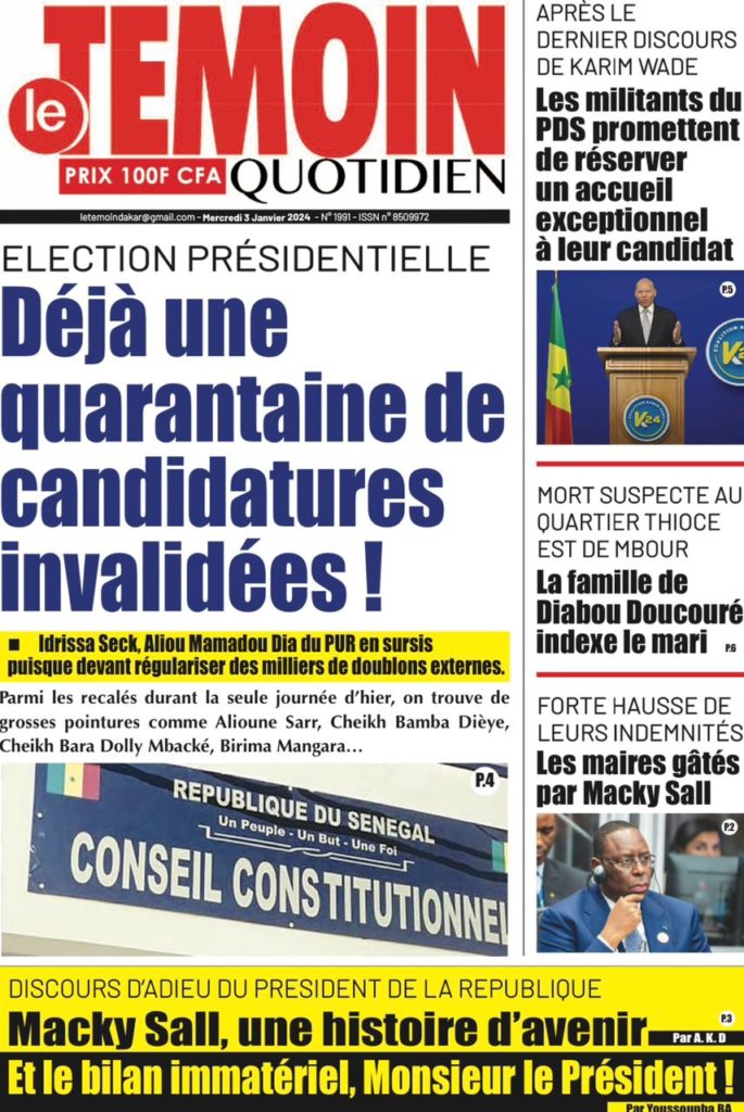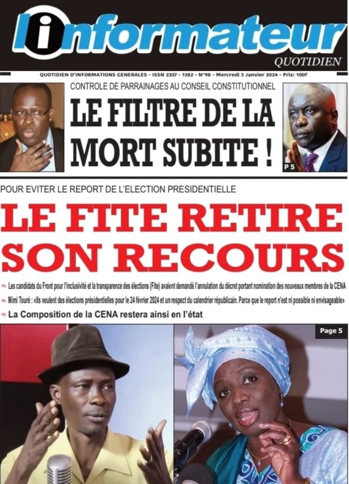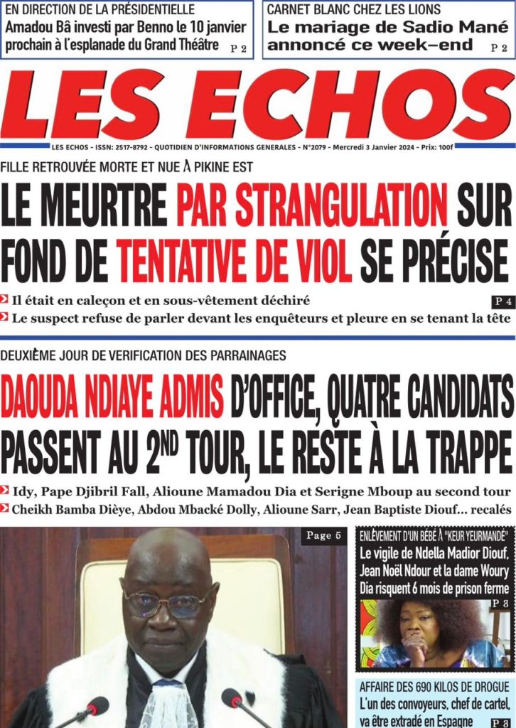" /> La Une des Quotidiens Nationaux du 3 Janvier 2024 Publié le 3 Jan, 2024 À DÉCOUVRIR Les Unes des quotidiens nationaux du 07 novembre 2025 7 Nov, 2025 La Rédaction de SenCaféActu Partager ->