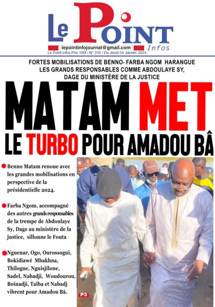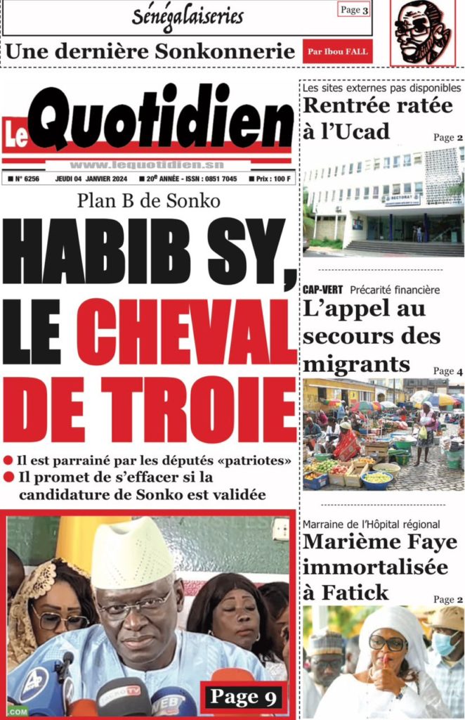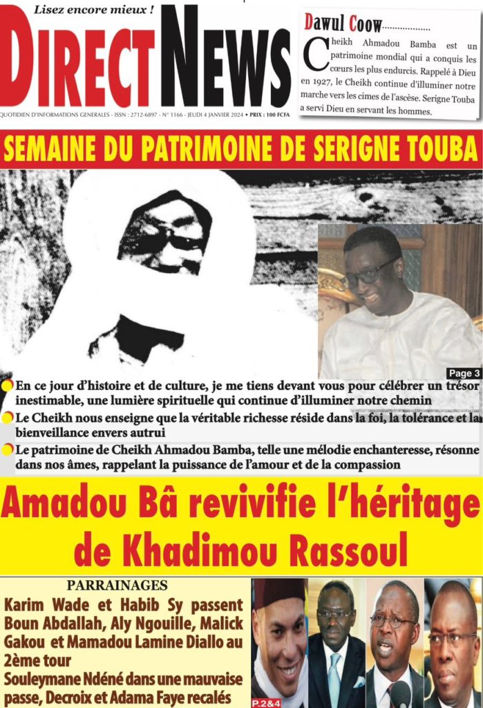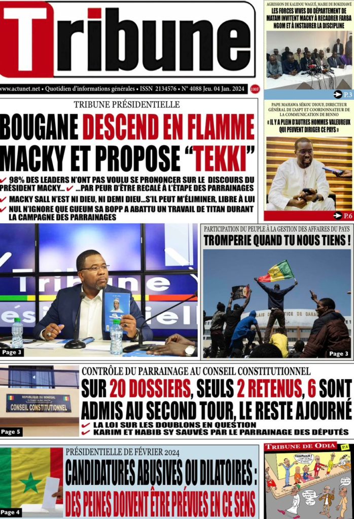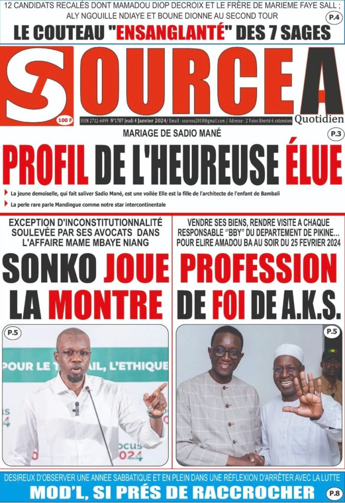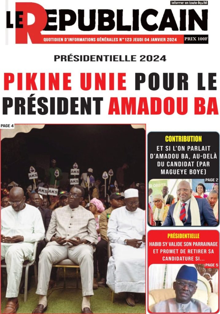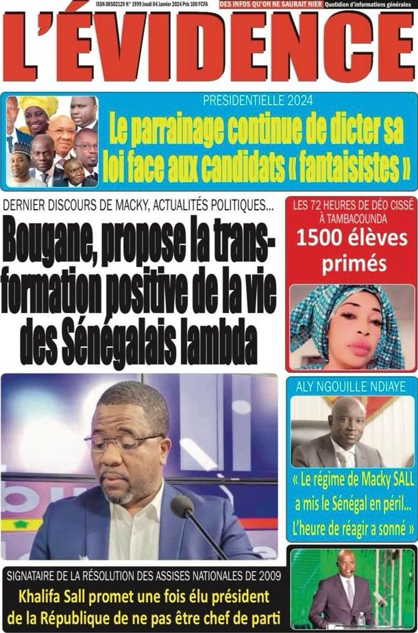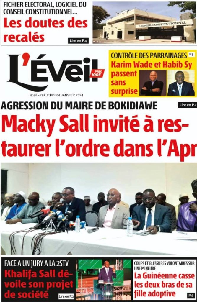 " /> La Une des Quotidiens Nationaux du 4 Janvier 2024 Publié le 4 Jan, 2024 À DÉCOUVRIR Les Unes des quotidiens nationaux du 05 novembre 2025 5 Nov, 2025 La Rédaction de SenCaféActu Partager ->