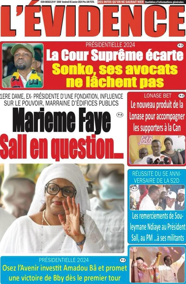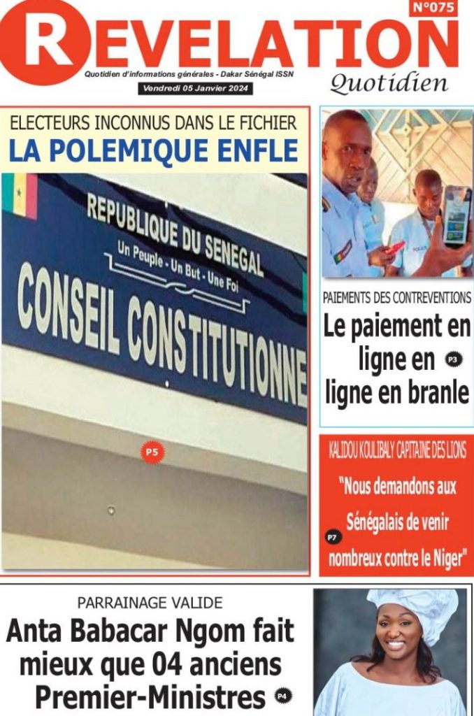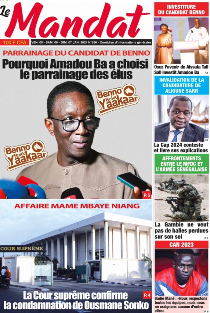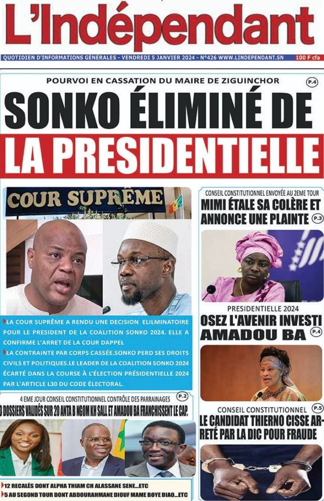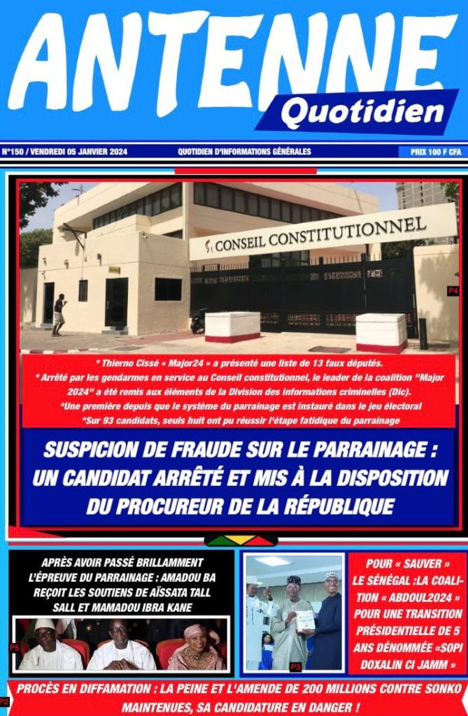 " /> La Une des Quotidiens Nationaux du 5 Janvier 2024 Publié le 5 Jan, 2024 À DÉCOUVRIR Les Unes des quotidiens nationaux du 07 novembre 2025 7 Nov, 2025 La Rédaction de SenCaféActu Partager ->