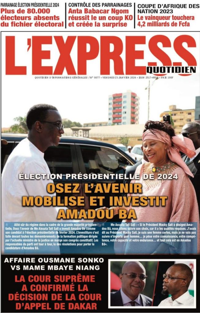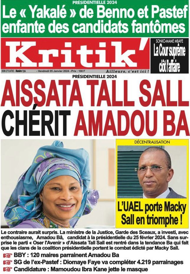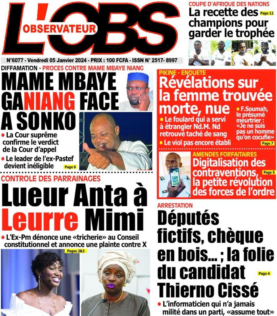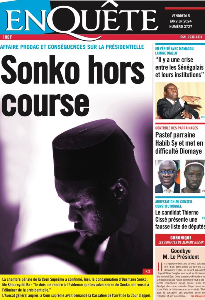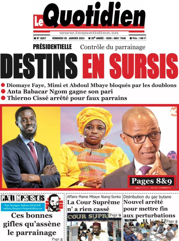 " /> La Une des Quotidiens Nationaux du 5 Janvier 2024 Publié le 5 Jan, 2024 À DÉCOUVRIR Les Unes des quotidiens nationaux du 07 novembre 2025 7 Nov, 2025 La Rédaction de SenCaféActu Partager ->