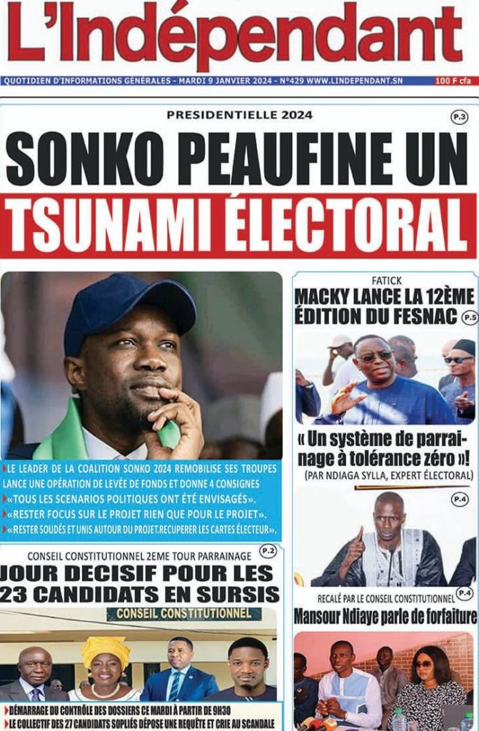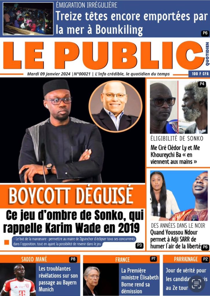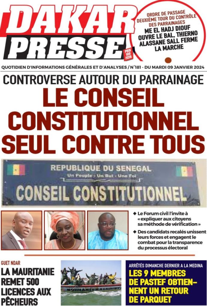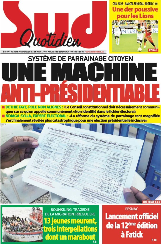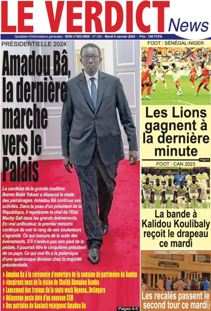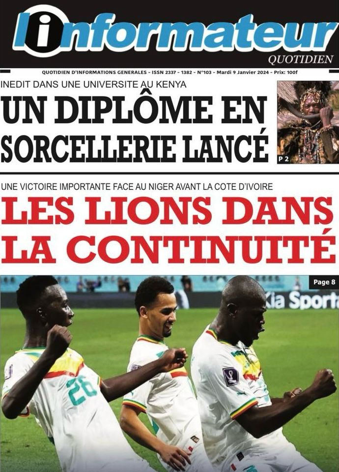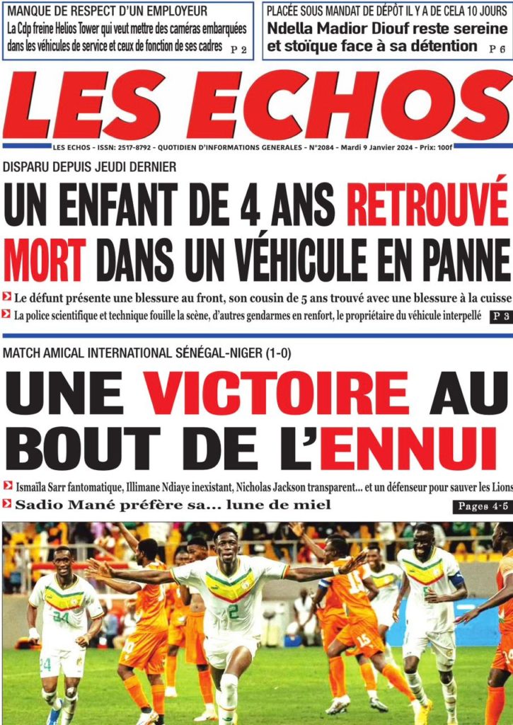 " /> La Une des Quotidiens Nationaux du 9 Janvier 2024 Publié le 9 Jan, 2024 À DÉCOUVRIR Les Unes des quotidiens nationaux du 13 novembre 2025 13 Nov, 2025 La Rédaction de SenCaféActu Partager ->