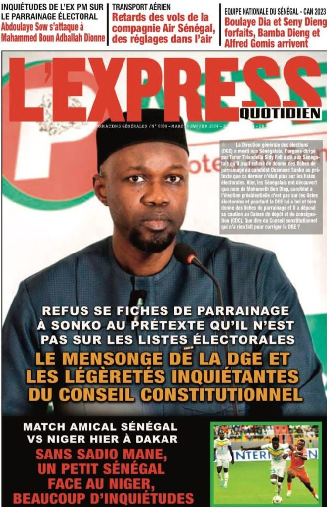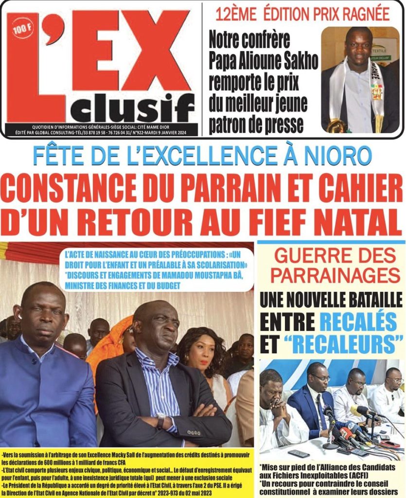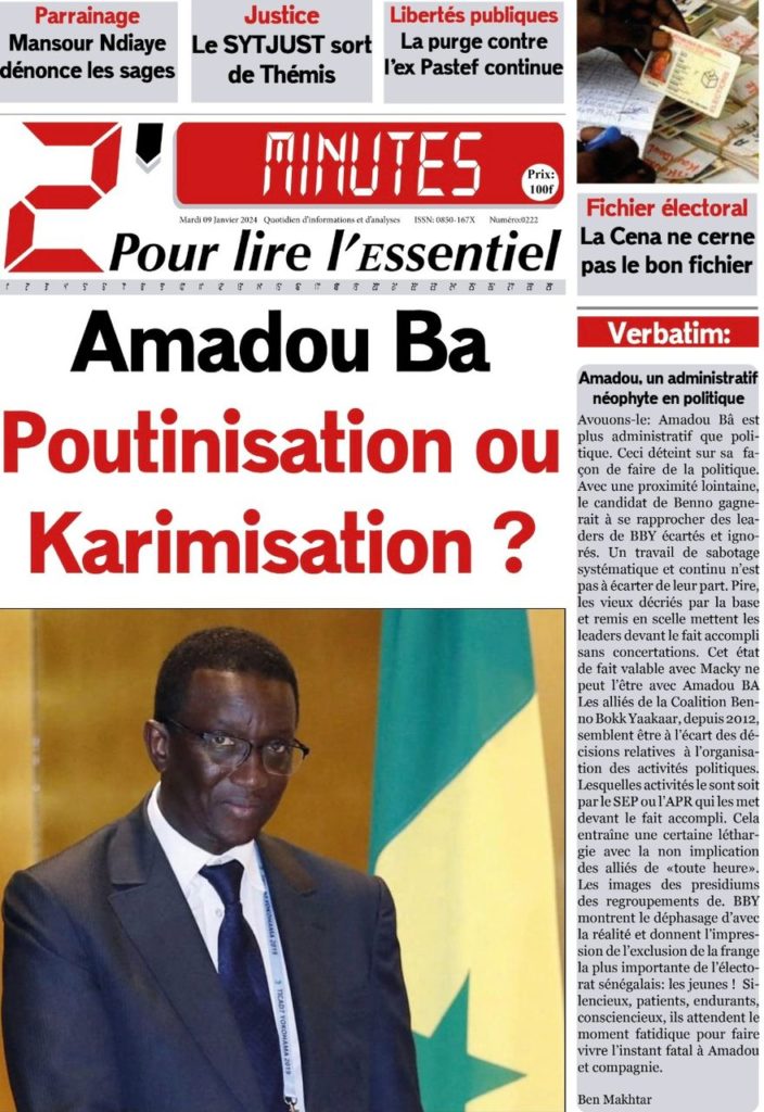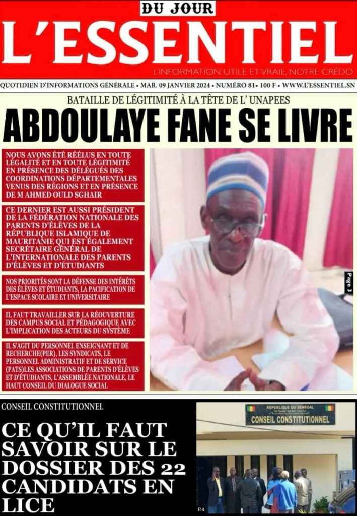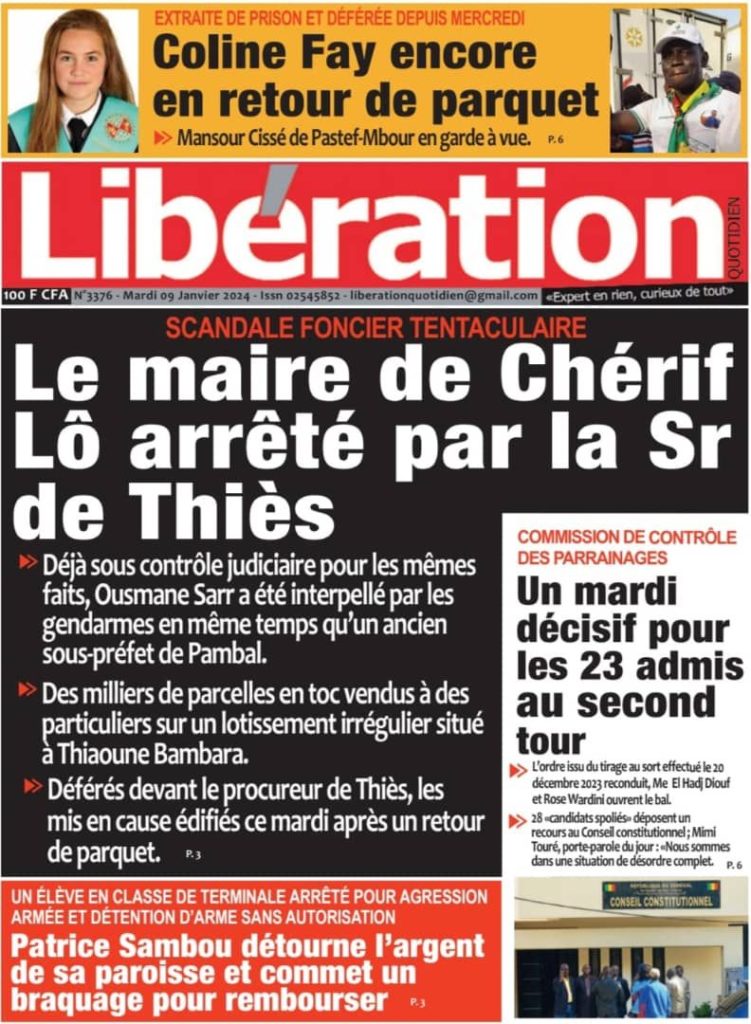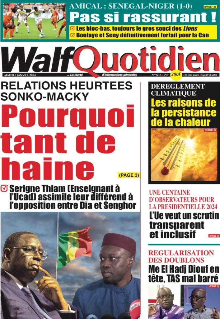 " /> La Une des Quotidiens Nationaux du 9 Janvier 2024 Publié le 9 Jan, 2024 À DÉCOUVRIR Les Unes des quotidiens nationaux du 13 novembre 2025 13 Nov, 2025 La Rédaction de SenCaféActu Partager ->