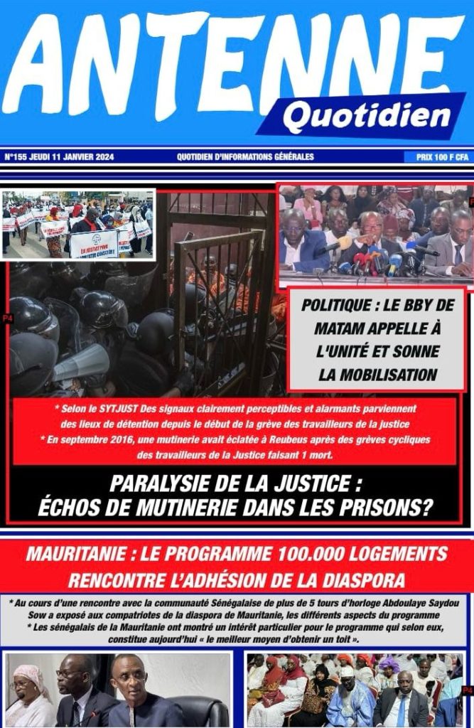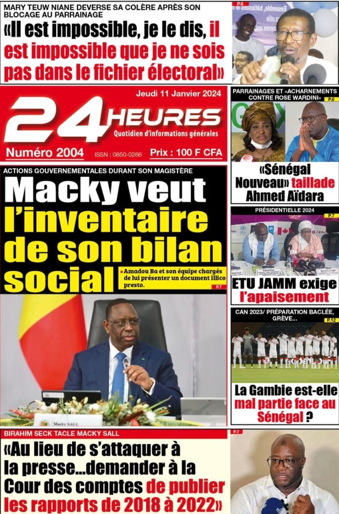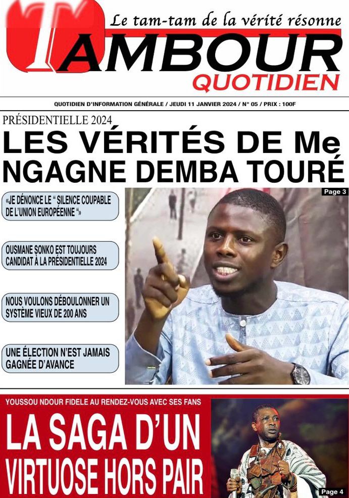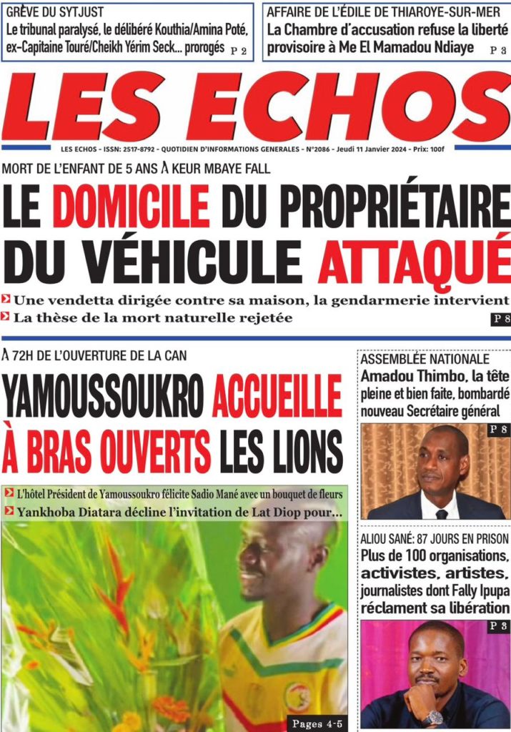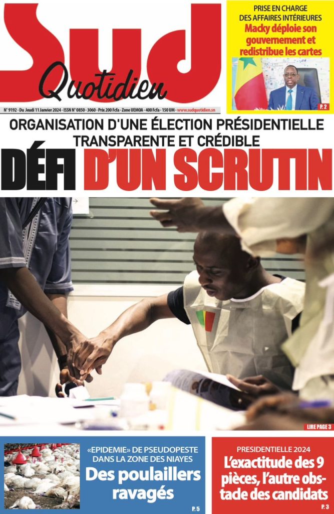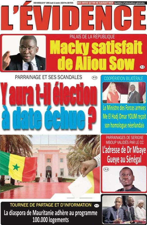 " /> La Une des Quotidiens Nationaux du 11 Janvier 2024 Publié le 11 Jan, 2024 À DÉCOUVRIR Les Unes des quotidiens nationaux du 29 novembre 2025 29 Nov, 2025 La Rédaction de SenCaféActu Partager ->