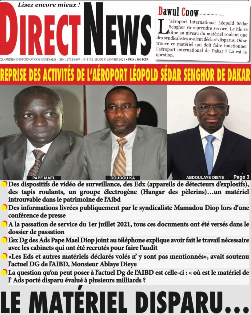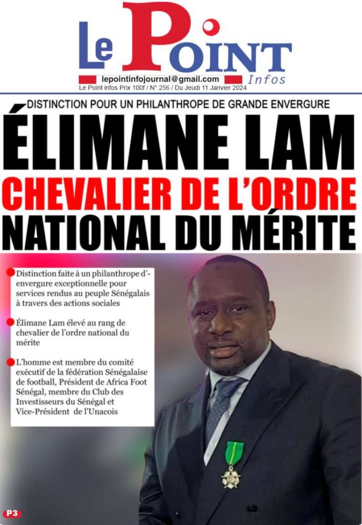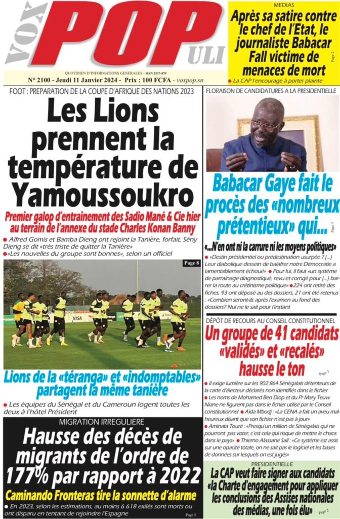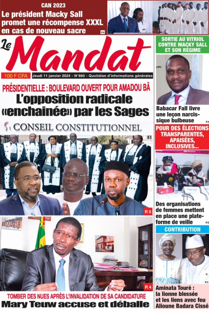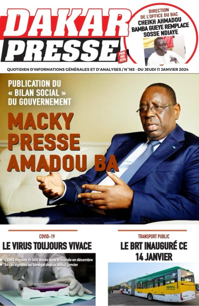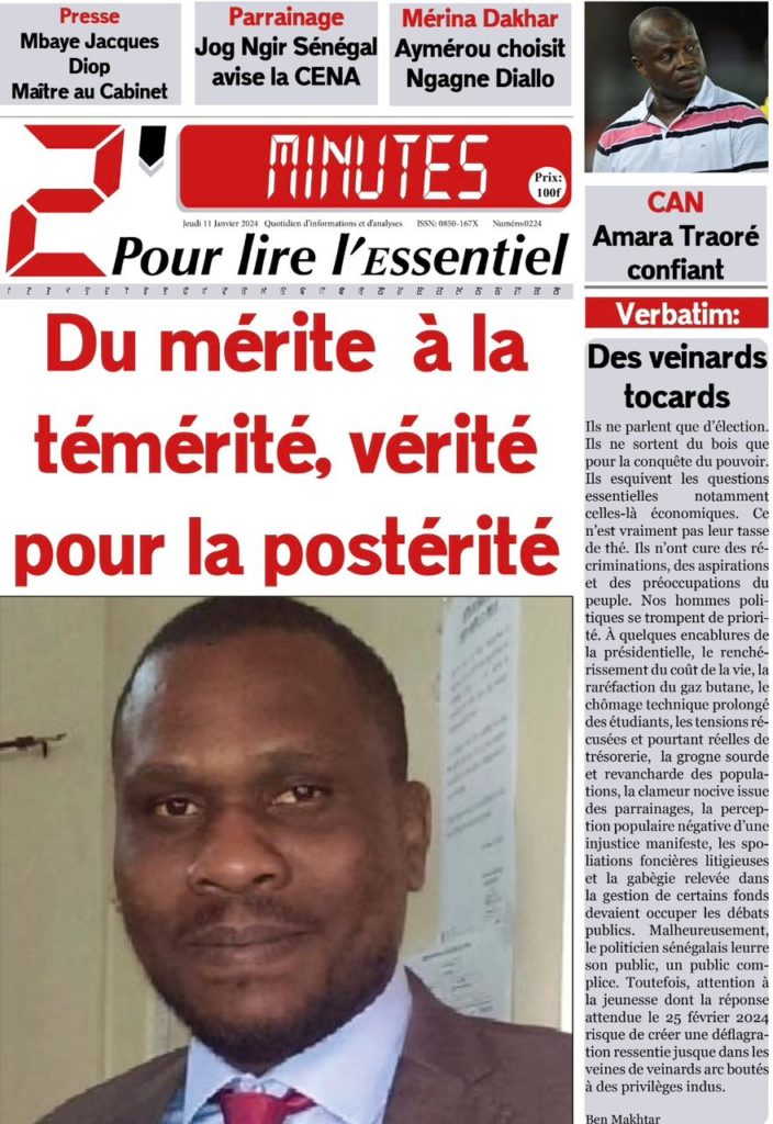 " /> La Une des Quotidiens Nationaux du 11 Janvier 2024 Publié le 11 Jan, 2024 À DÉCOUVRIR Les Unes des quotidiens nationaux du 29 novembre 2025 29 Nov, 2025 La Rédaction de SenCaféActu Partager ->